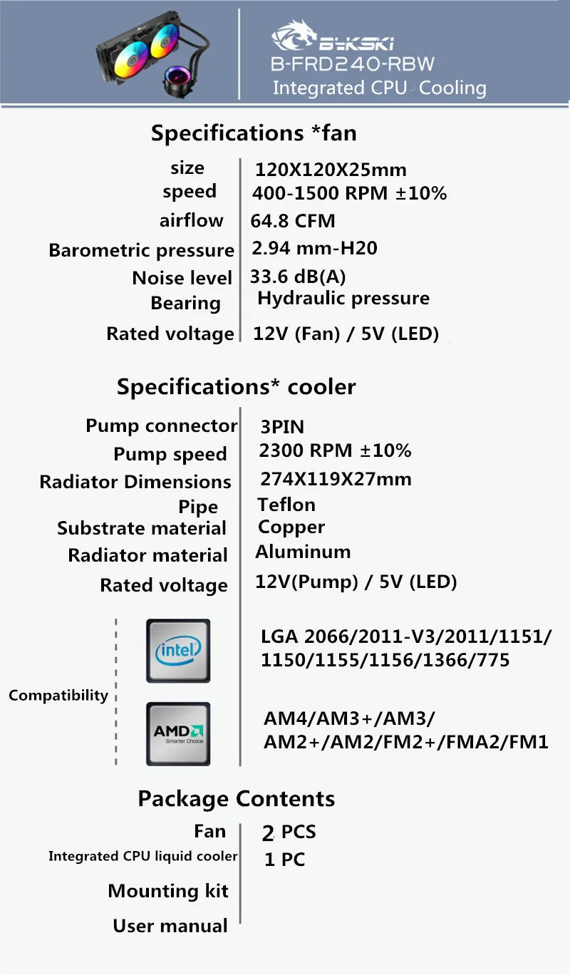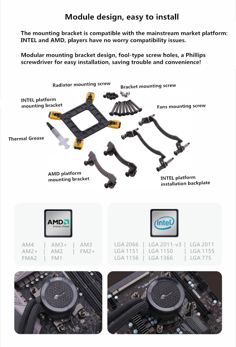 Comprar Bykski-enfriador de CPU AIO, Kit de refrigeración por agua para intel LGA 775 115X 1360 2011 2066 2011-3/AM2 AM2 + AM3 AM3 + AM4 FM1 FMA2, 120 240