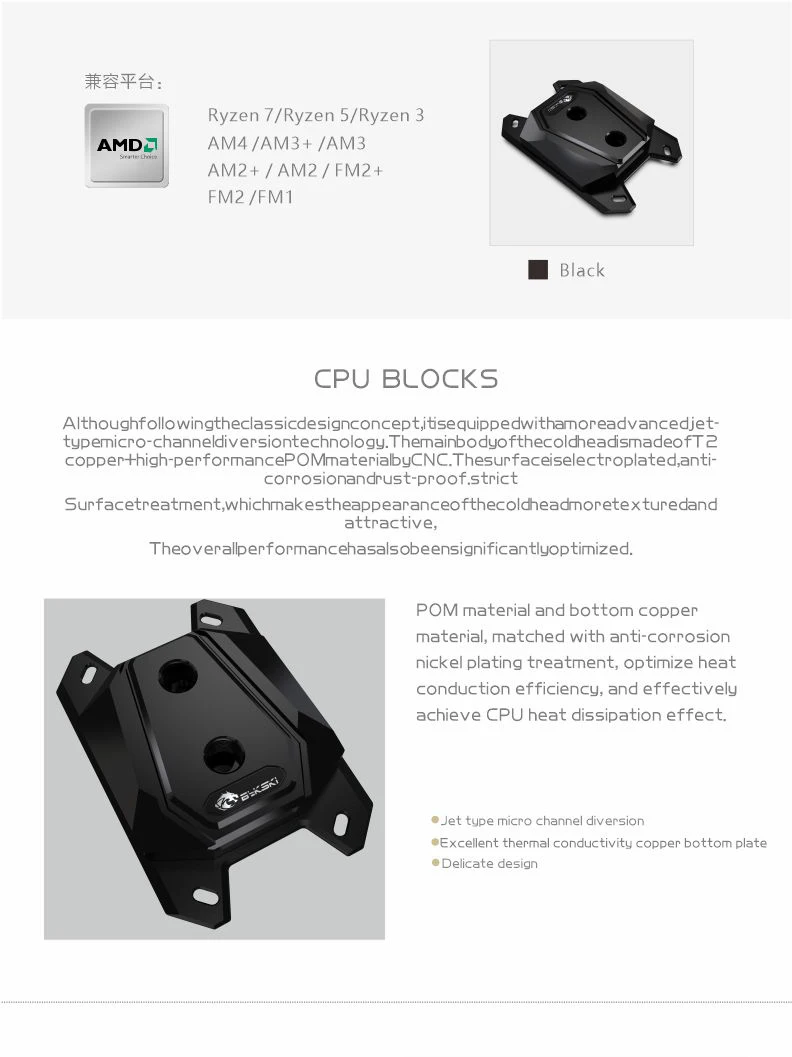 Comprar Bykski-enfriador de CPU POM para AMD Ryzen3/5/7 X470/AM/FM, bloque de agua, CPU-XPR-POM-M-V2