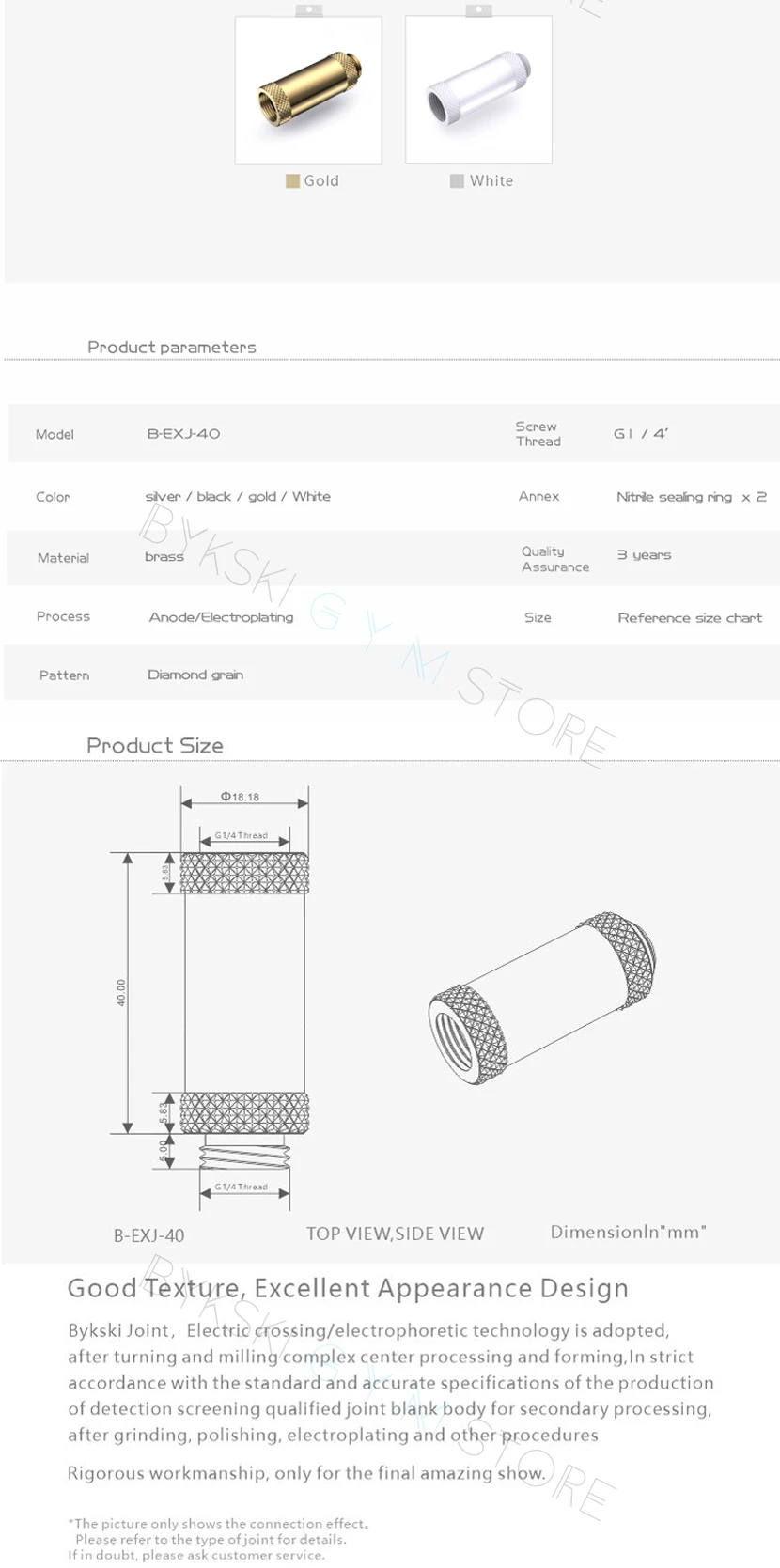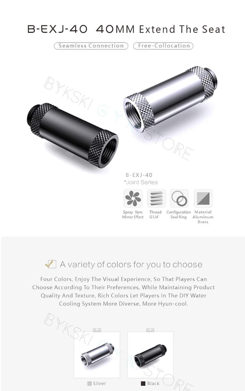 Bykski-extensor de asiento de acoplamiento para tubo duro de refrigeración por agua de PC, paso de extensión G1/4 ''M-F de 40mm a través de conexión de latón
