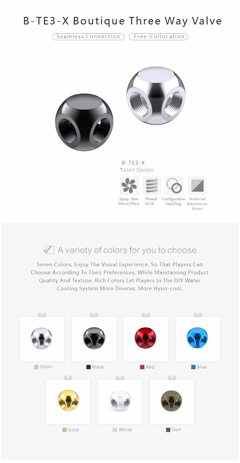 BYKSKI G1/4 ''X3 negro plata oro adaptadores cúbicos de 3 vías accesorios de refrigeración por agua accesorios multicanal