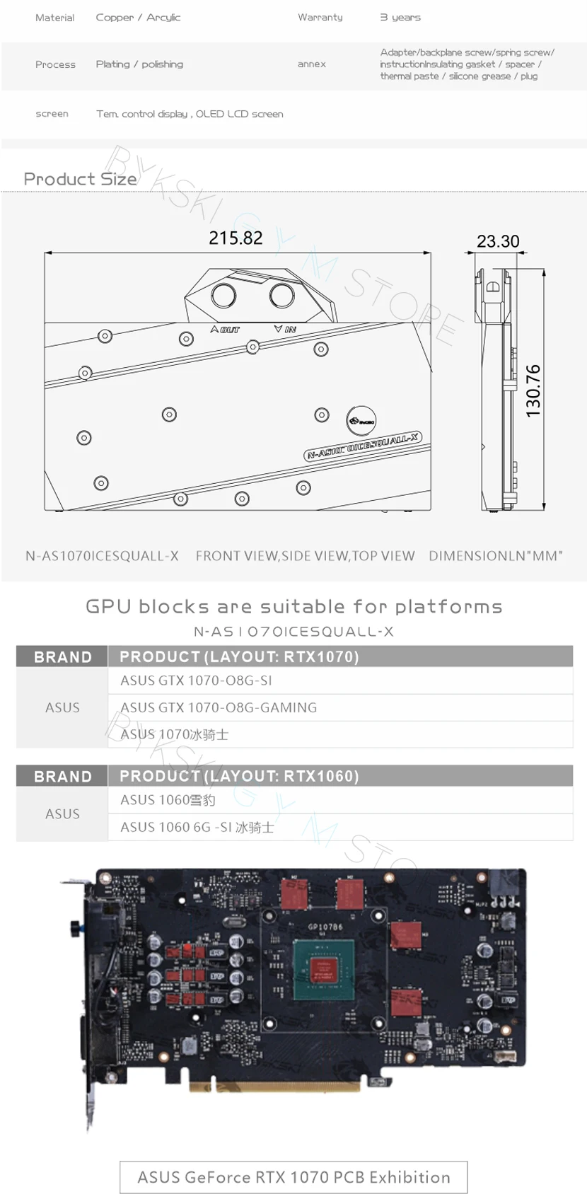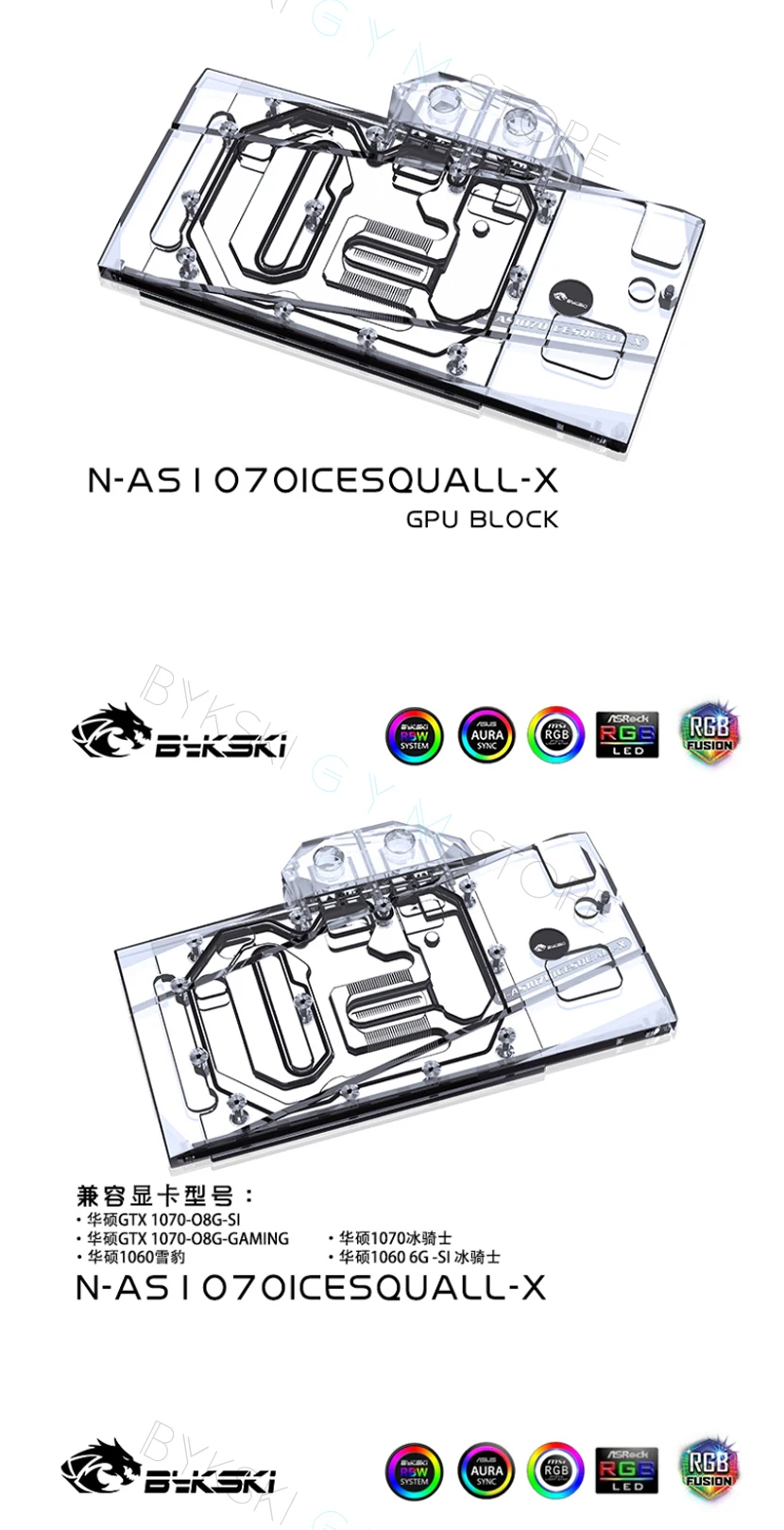 Comprar BYKSKI GPU bloque de agua para ASUS GTX1070-O8G-SI/GAMING /GTX 1060 luz RGB Dual/cubierta completa tarjeta gráfica bloque de radiador de cobre