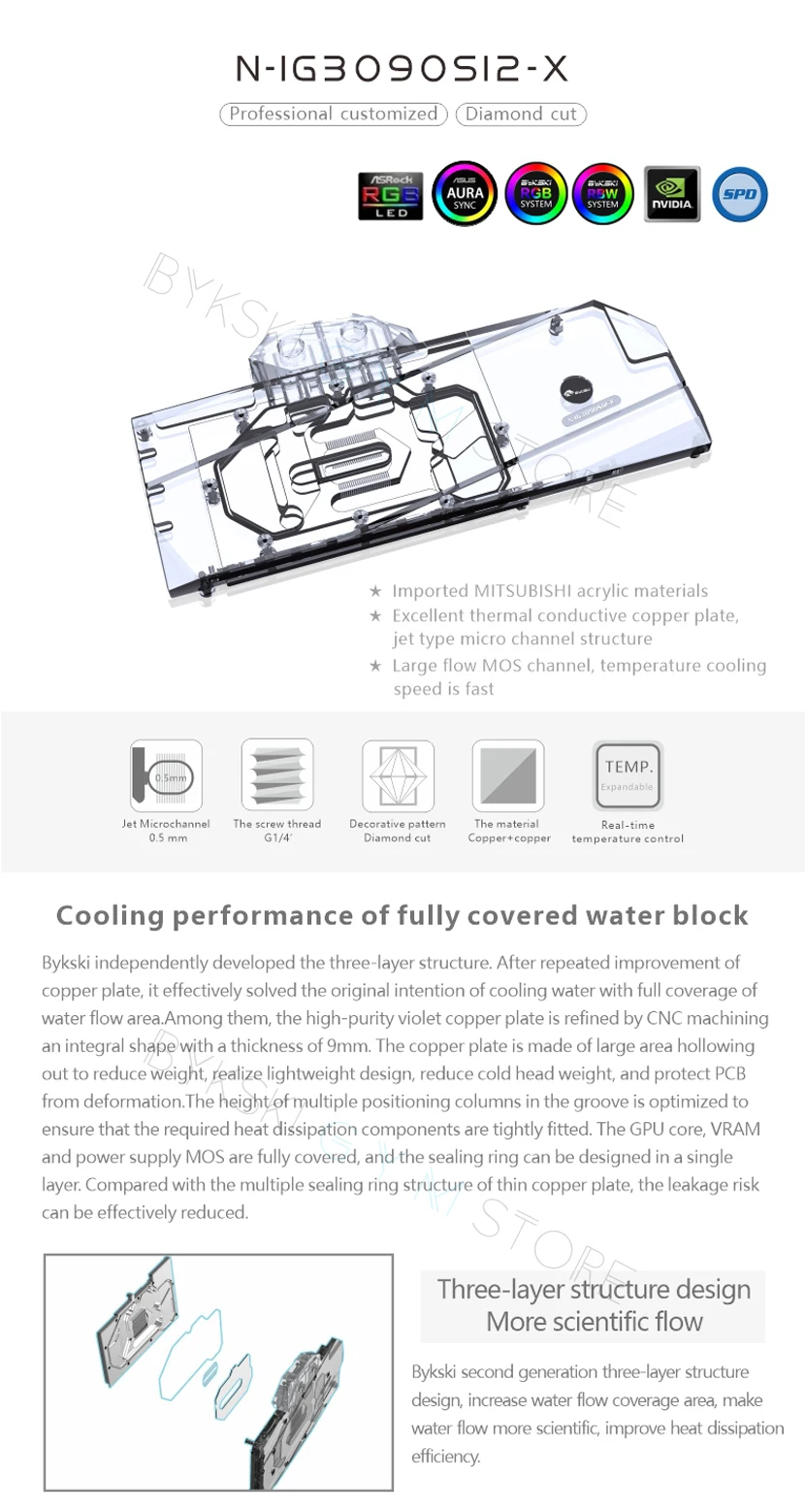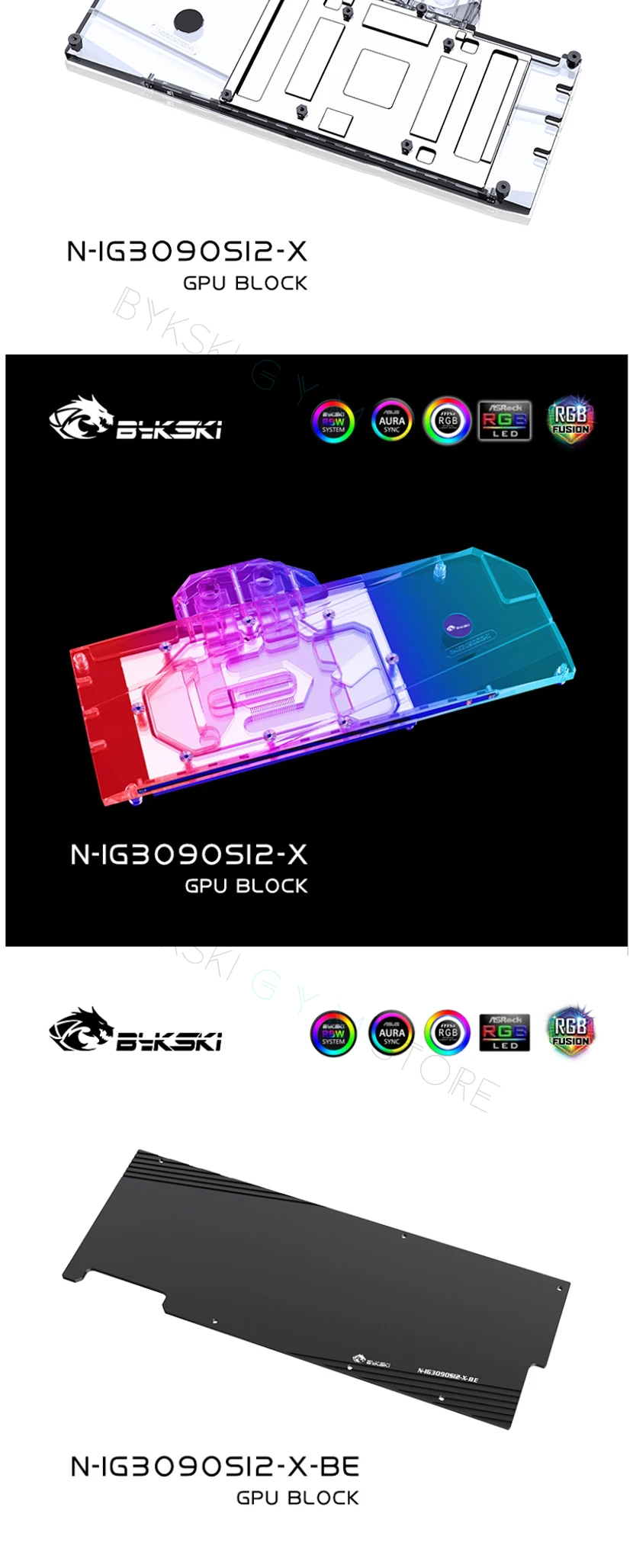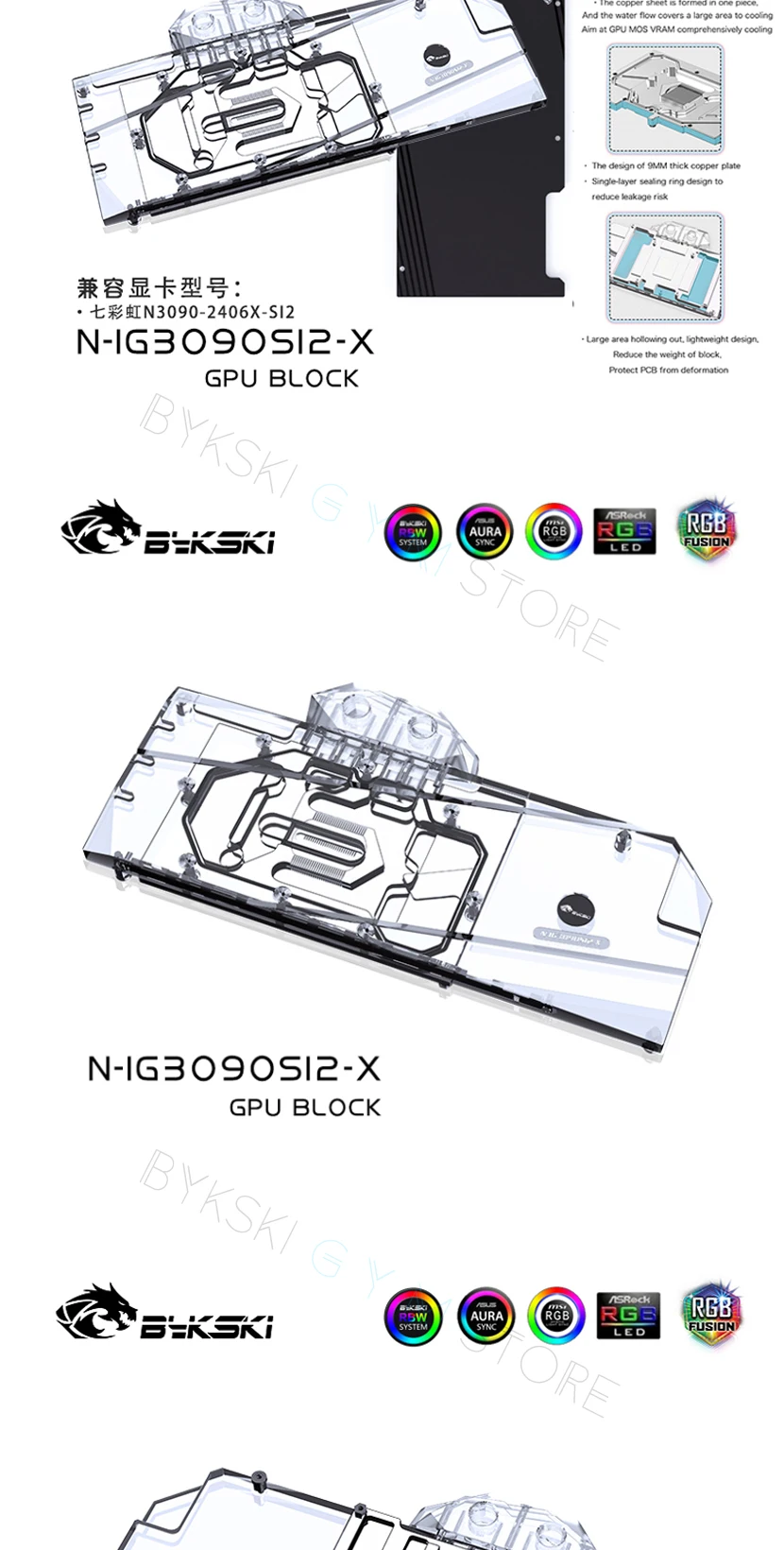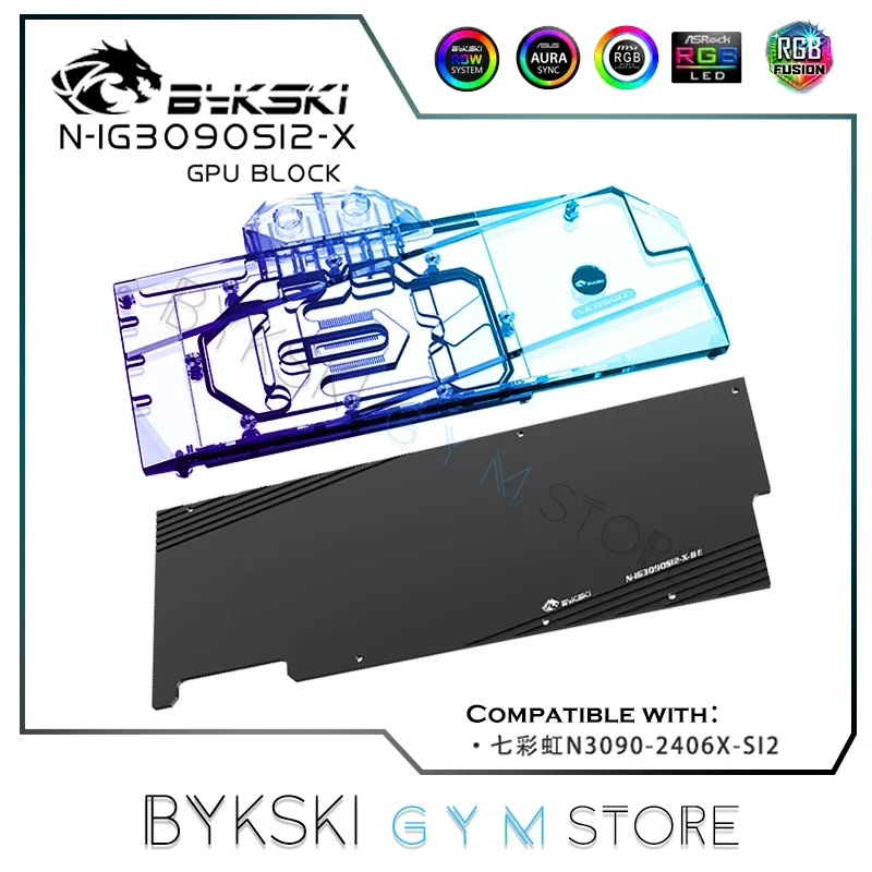 Comprar Bykski GPU bloque de agua para iGame colorido N3090-2406X-SI2 tarjeta gráfica enfriador de agua, 5V ARGB AURA, N-IG3090SI2-X