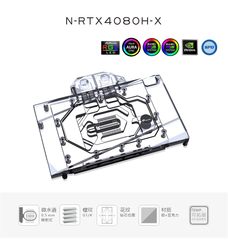 Bykski GPU bloque de agua para NVIDIA GeForce RTX 4080 edición de referencia tarjeta AIC/radiador de refrigeración de cobre RGB AURA/N-RTX4080H-X - imagen 4