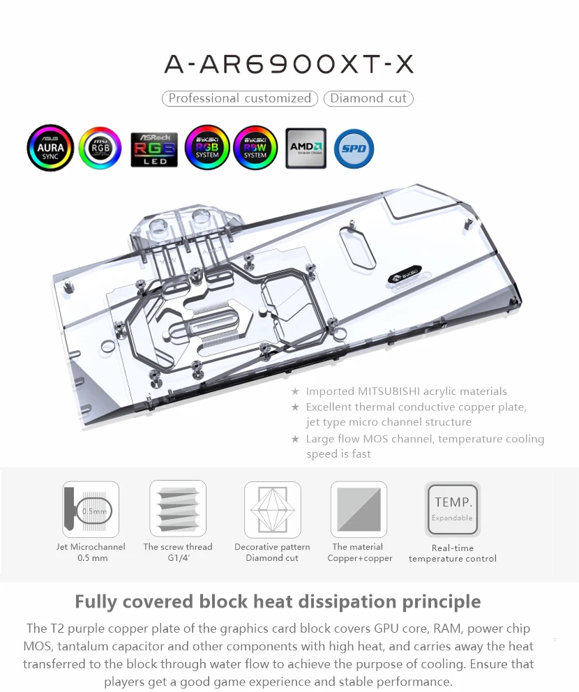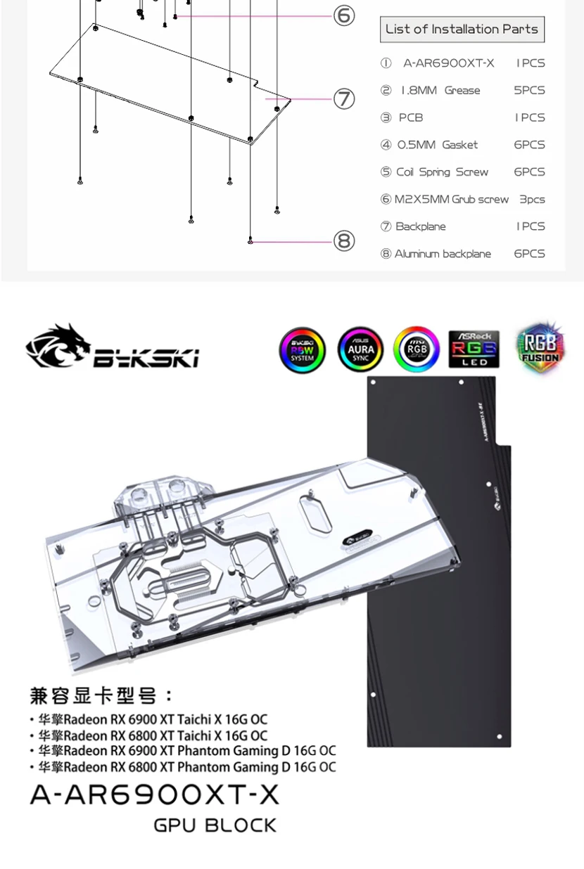 Comprar Bykski GPU bloque de agua uso para Asrock RX6900XT/RX6800XT Phantom Gaming/Taichi X 16G OC tarjeta VGA/cubierta completa A-AR6900XT-X de cobre