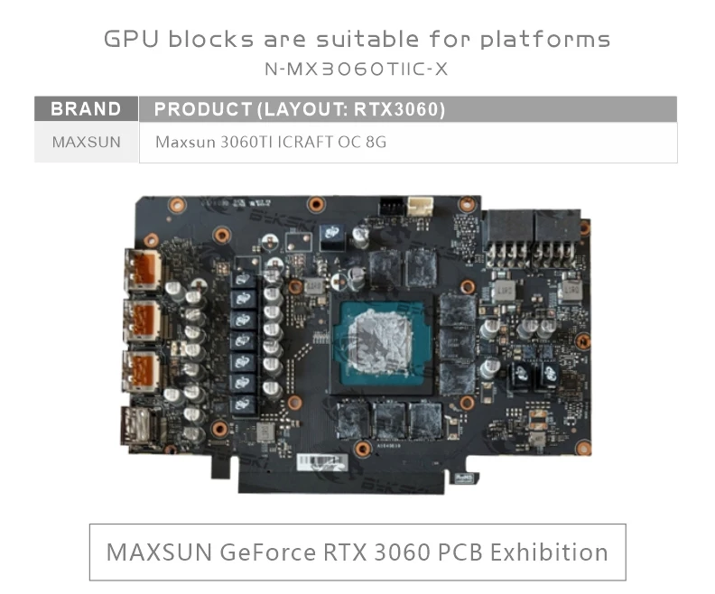Comprar Bykski GPU bloque de agua uso para MAXSUN GeForce RTX 3060 Ti iCraft OC 8G tarjeta de vídeo/radiador enfriador de cobre/N-MX3060TIIC-X