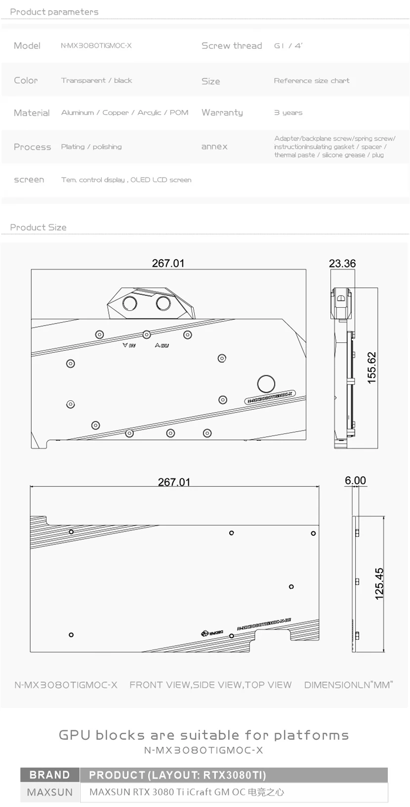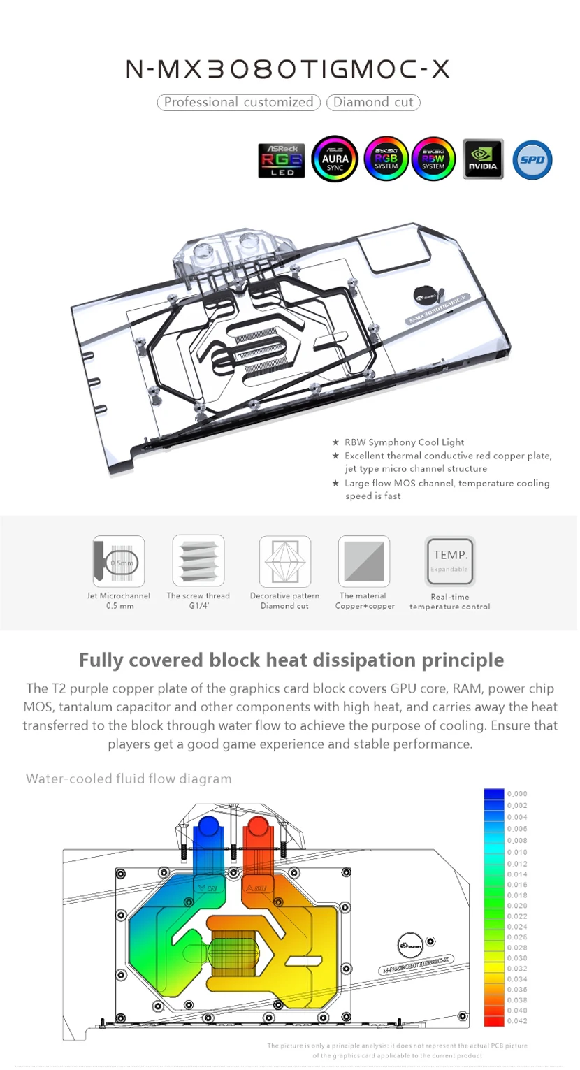 Comprar Bykski GPU bloque de agua uso para MAXSUN RTX 3080 Ti icraft GM OC refrigeración, enfriador de tarjeta gráfica N-MX3080TIGMOC-X de cobre