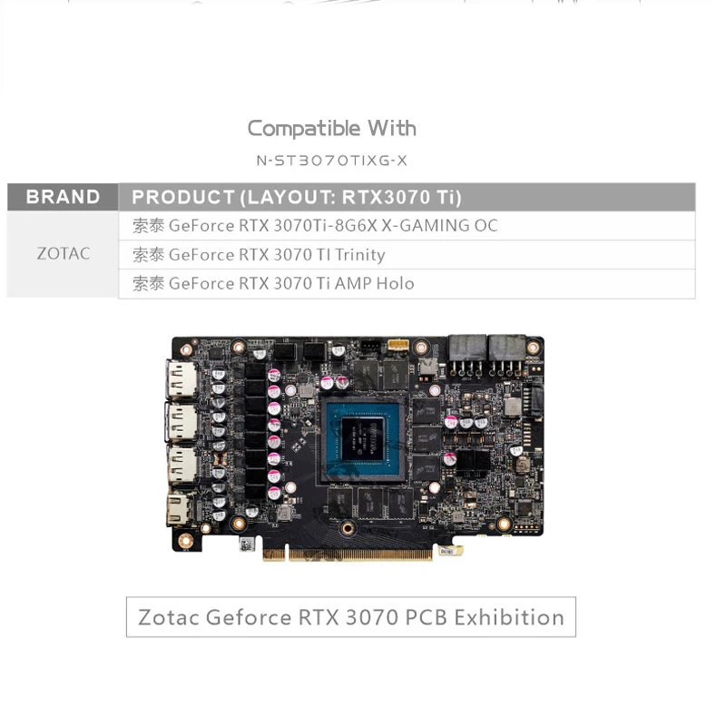 Compatibility:(Including but not limited to the following models)ZOTAC RTX 3070 Ti 8G6X X-GAMING OCZOTAC RTX3070 Ti AMP HoloZotac Gaming GeForce RTX 3070 Ti Trinity (ZT-A30710D-10P)