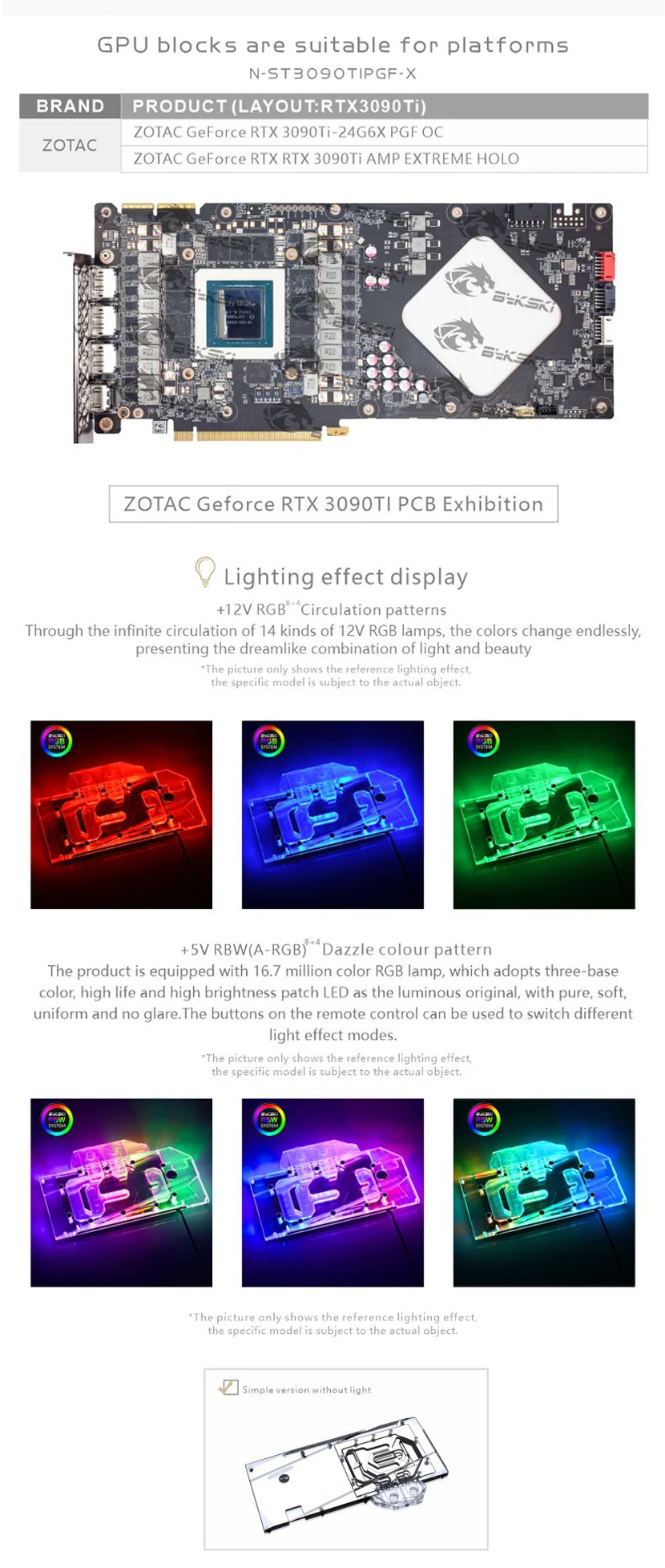 Comprar Bykski GPU bloque de agua para ZOTAC Geforce RTX 3090Ti AMP EXTREME HOLO/24G6X PGF OC tarjeta, radiador de cobre VGA N-ST3090TIPGF-