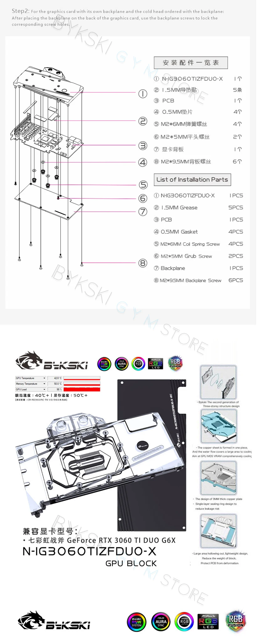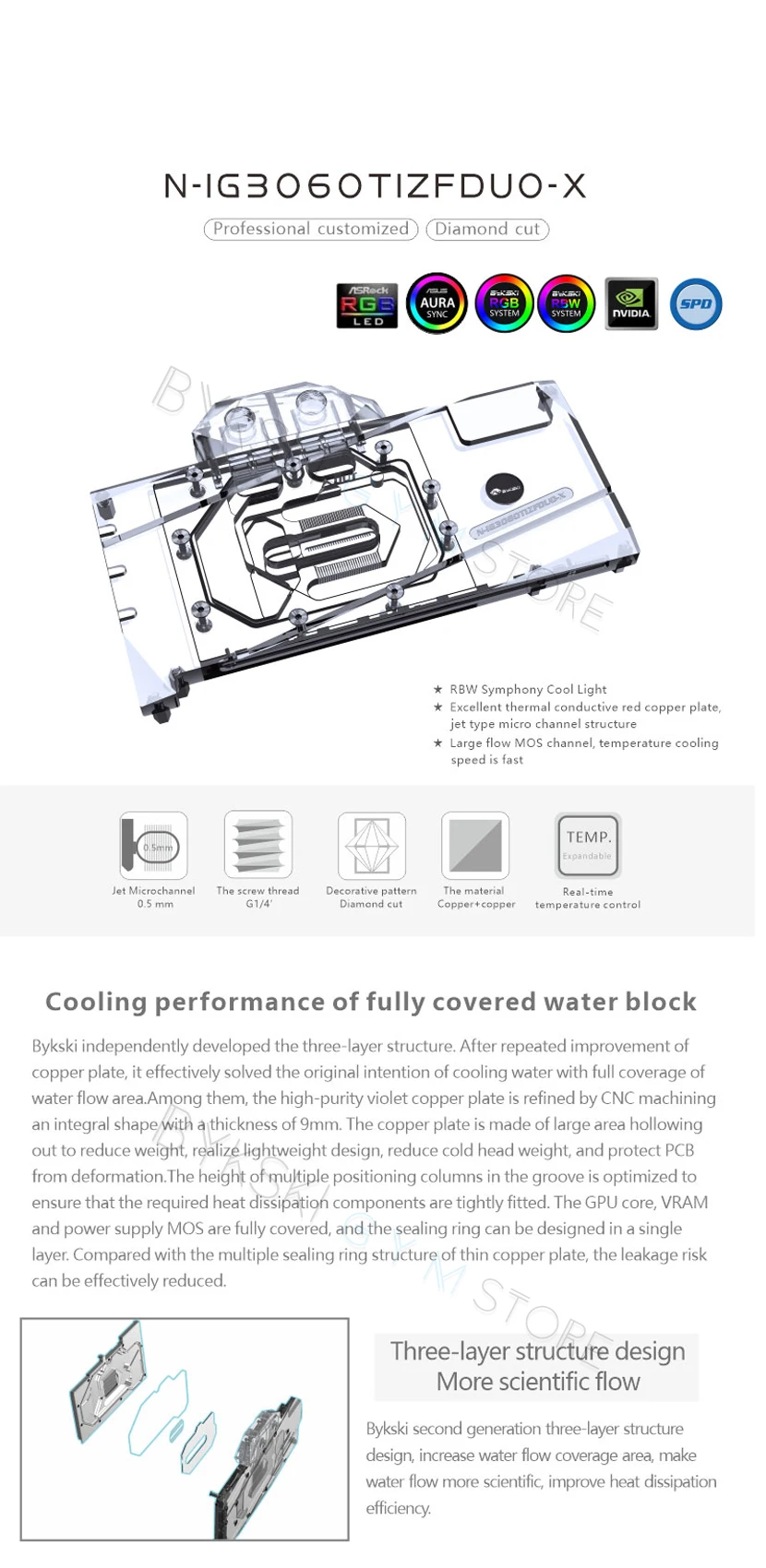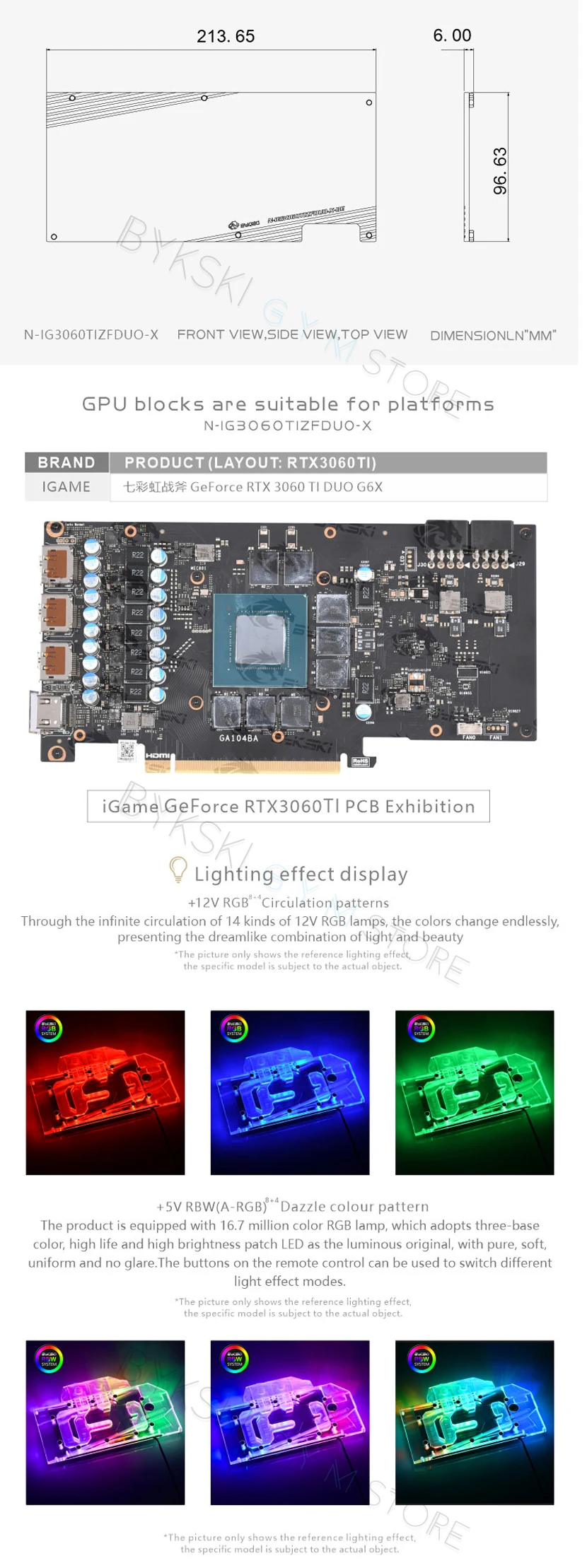 Comprar Bykski GPU bloque de refrigeración por agua para tarjeta colorida AX GeForce RTX 3060 TI DUO G6X, radiador de cobre RGB VGA N-IG3060TIZFDUO-X