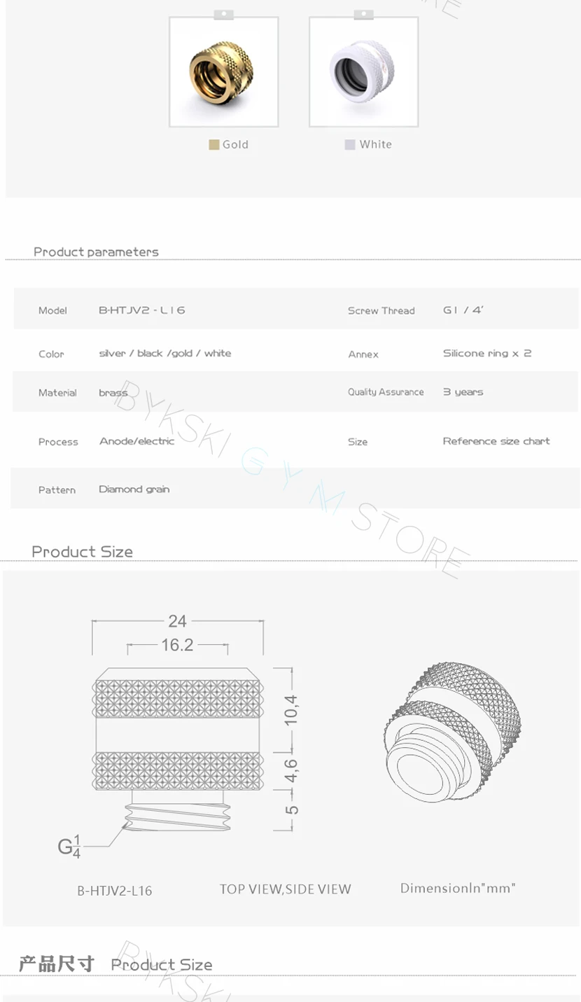 Comprar Bykski Hard Pipe Fitting Hand-Tighten Series, OD 12mm 14mm 16mm PETG/Acrylic/ Metal Rigid Tubing Conenctor, G1/4'' 7 Colors,2Pcs