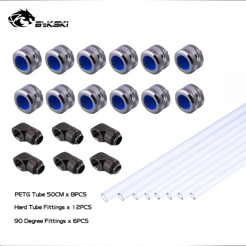 Comprar Bykski-Kit de accesorios de tubo duro PETG DIY, sistema de refrigeración por agua para ordenador, color plateado, negro, dorado y blanco, OD14