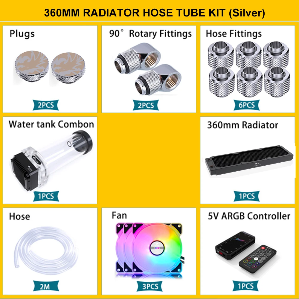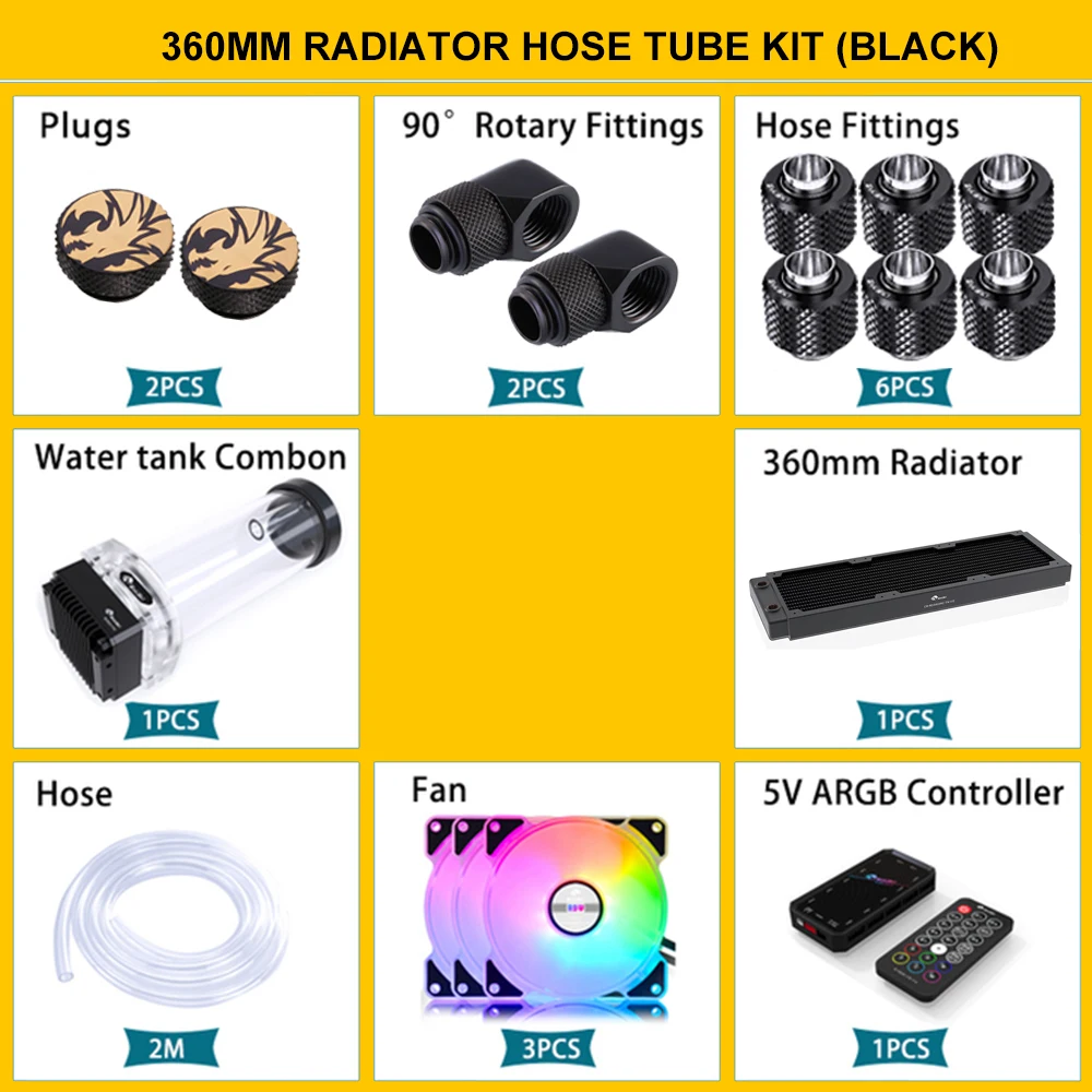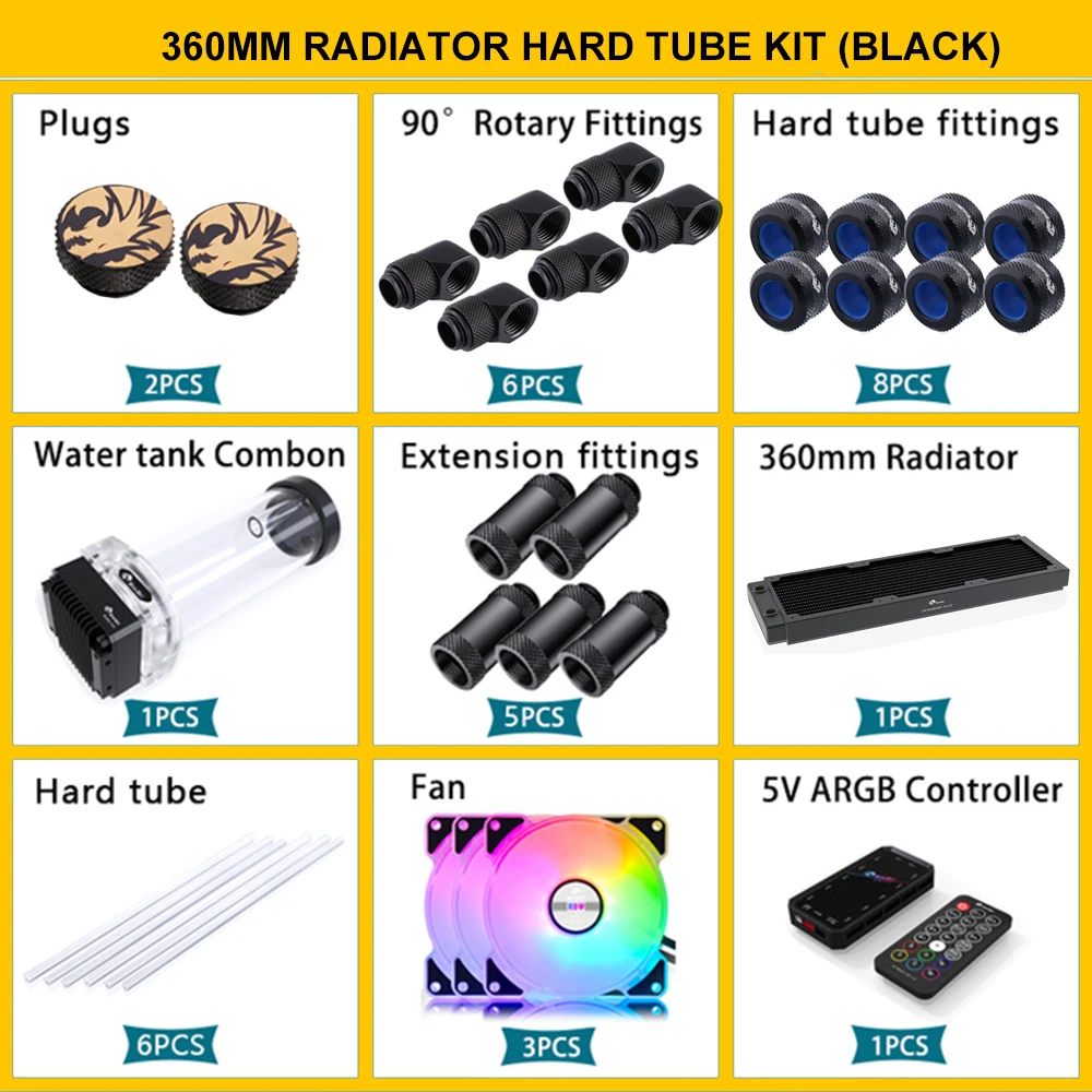 Comprar Bykski-Kit de refrigeración por agua, bomba Rservoir + ventilador + radiador de 360mm/240mm + controlador + ajuste + manguera/tubo duro para PC GPU CPU 12V 5V