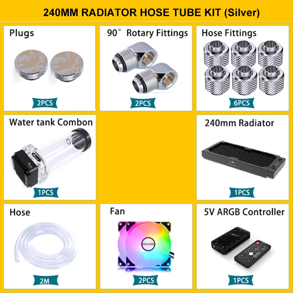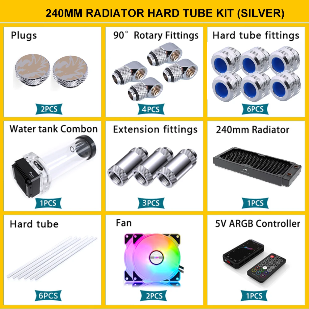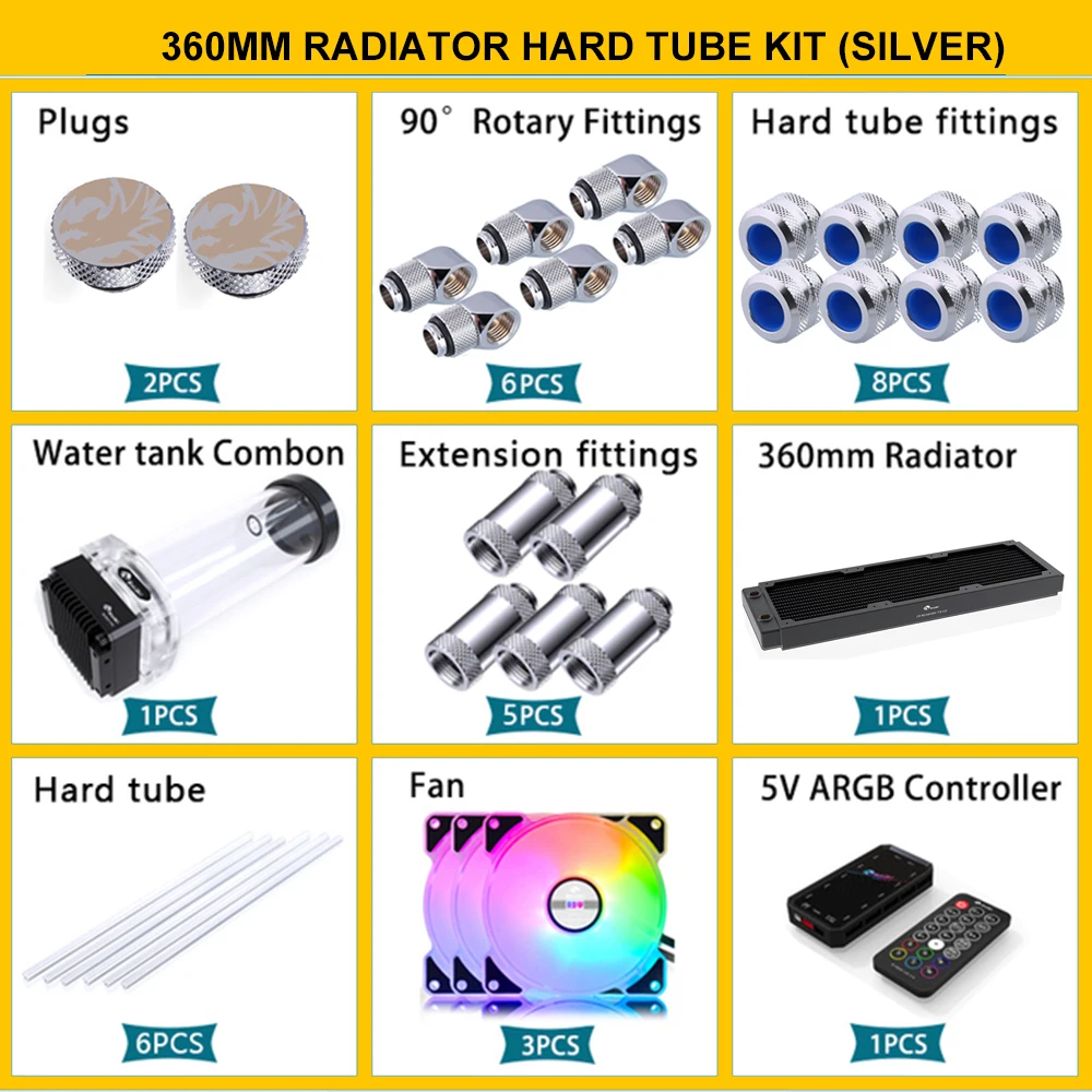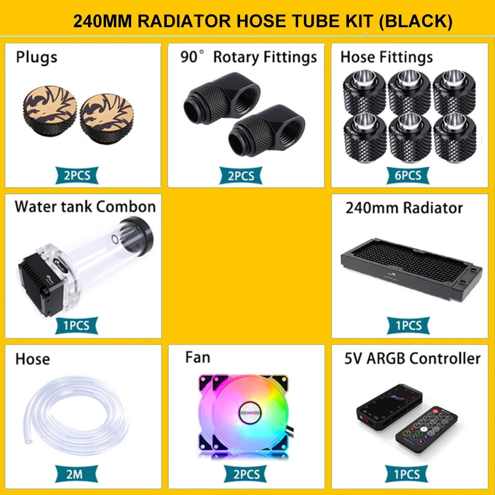 Comprar Bykski-Kit de refrigeración por agua, bomba Rservoir + ventilador + radiador de 360mm/240mm + controlador + ajuste + manguera/tubo duro para PC GPU CPU 12V 5V
