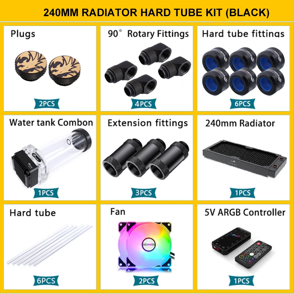 Bykski-Kit de refrigeración por agua, bomba Rservoir + ventilador + radiador de 360mm/240mm + controlador + ajuste + manguera/tubo duro para PC GPU CPU 12V 5V