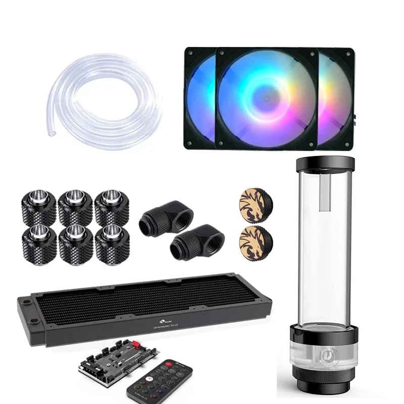 Bykski Kit de refrigeración por agua bomba Rservoir + ventilador + radiador de 360mm/240mm + controlador + accesorio + manguera/tubo duro para PC GPU CPU 12V 5V