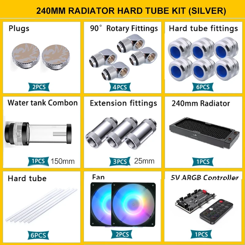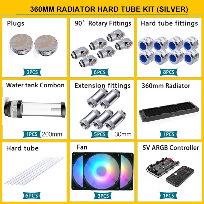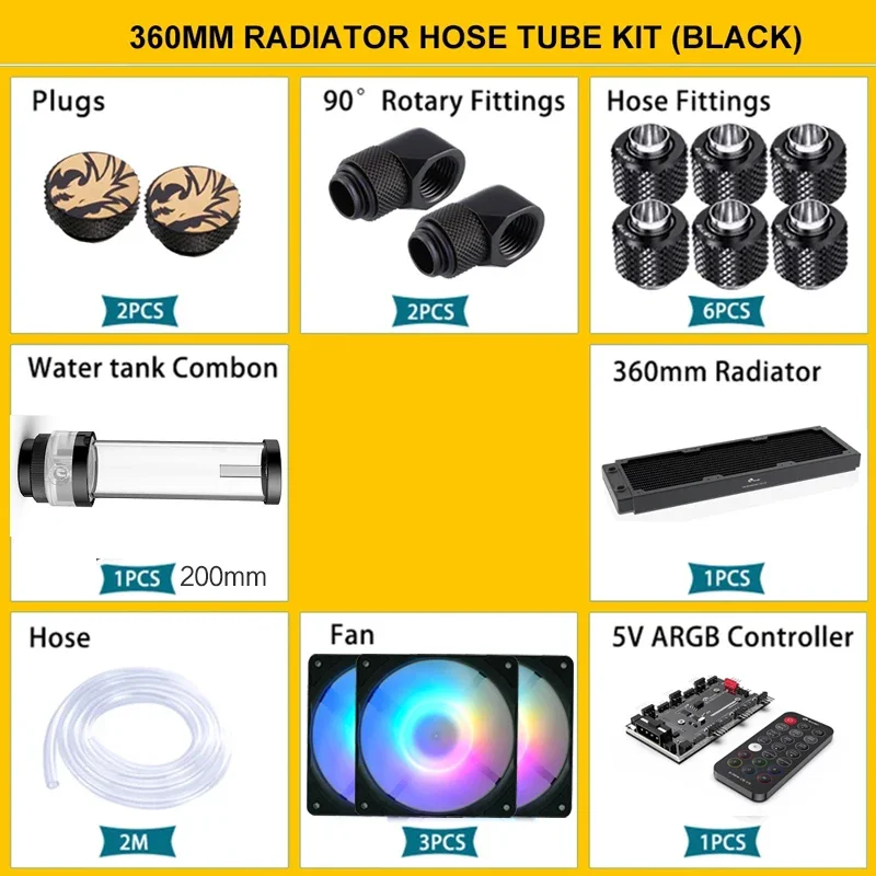 Comprar Bykski Kit de refrigeración por agua bomba Rservoir + ventilador + radiador de 360mm/240mm + controlador + accesorio + manguera/tubo duro para PC GPU CPU 12V 5V
