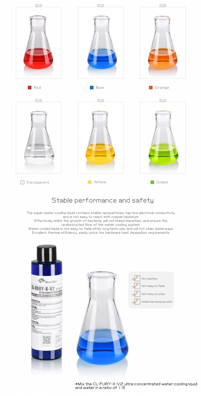 Comprar Bykski-líquido de refrigeración por agua para ordenador, 150 ML, 1:5, súper concentrado, conducción de calor, fluido conductor térmico, CL-FURY-X-V2