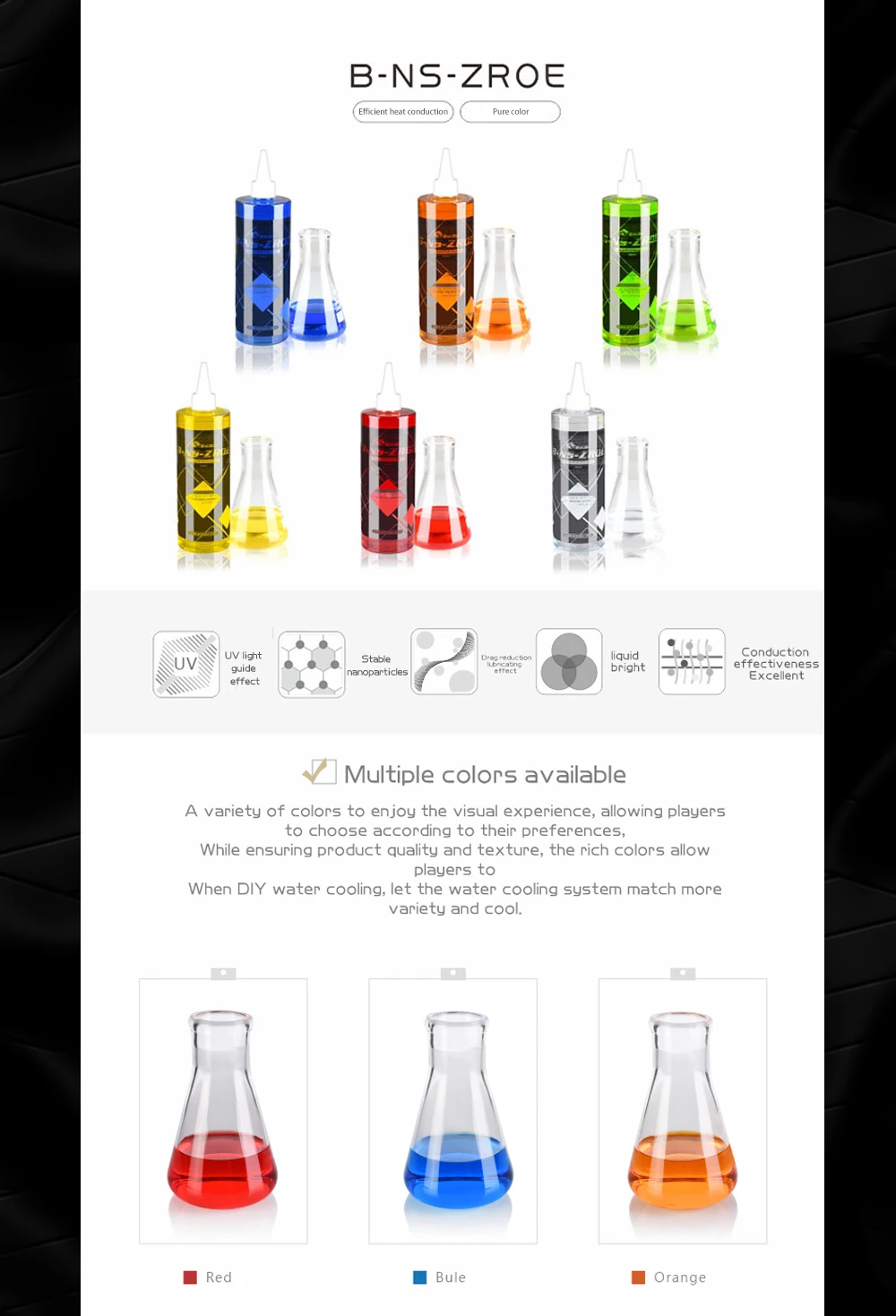 Bykski 500ML líquido refrigerante de agua líquido refrigerado por agua fluido térmico para sistema de refrigeración de PC azul, rojo, verde, transparente, amarillo, naranja