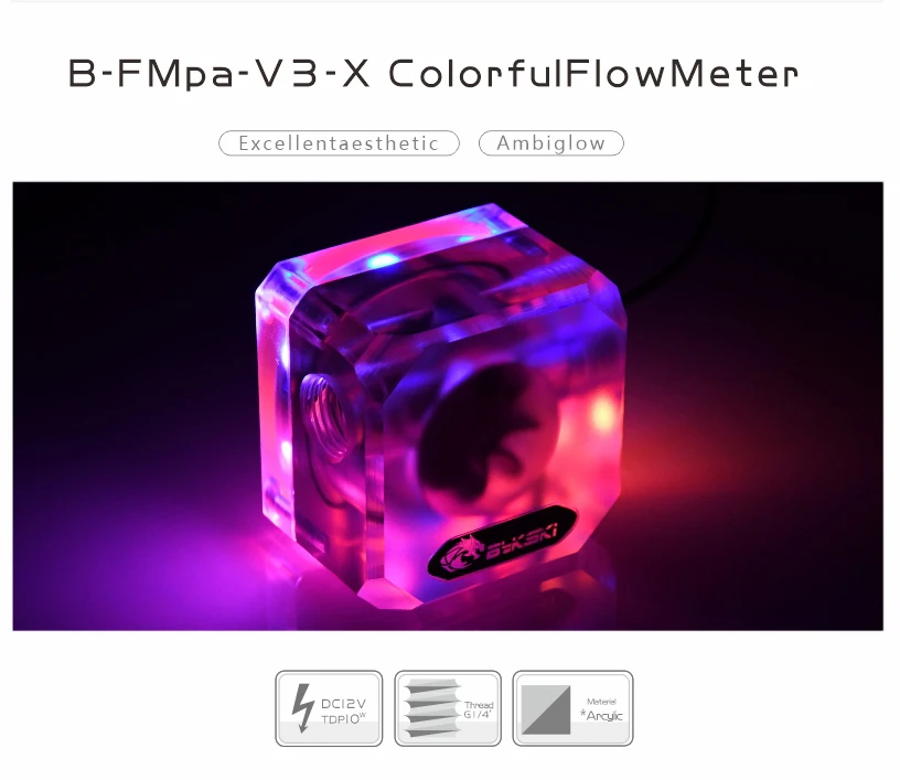 Comprar Bykski-medidor de flujo de agua esmerilada, monitoreo de flujo para refrigeración de agua de computadora, sincronización RGB/ARGB, B-FMpa-V3-X