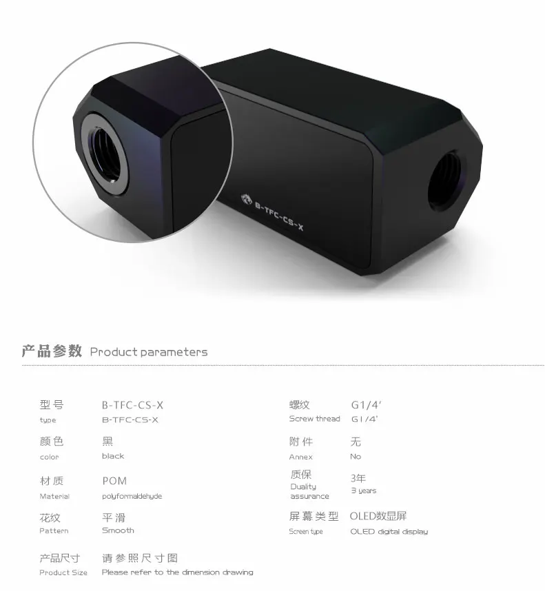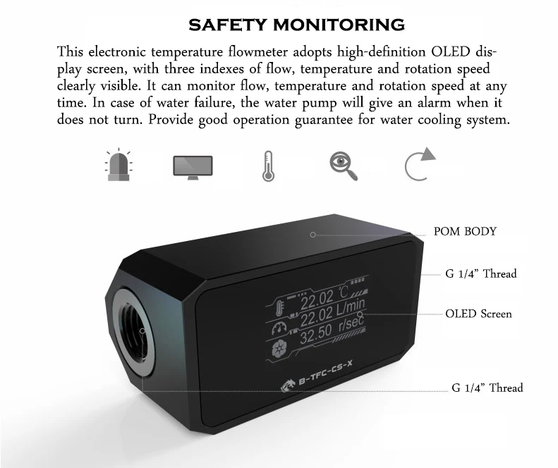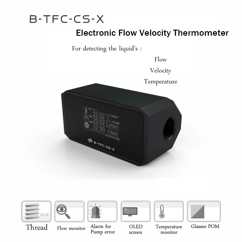 Bykski-medidor de flujo para enfriador de líquidos, termómetro, flujo + Temple 3 en 1, Monitor de refrigeración por agua, pantalla Digital OLED, B-TFC-CS-X