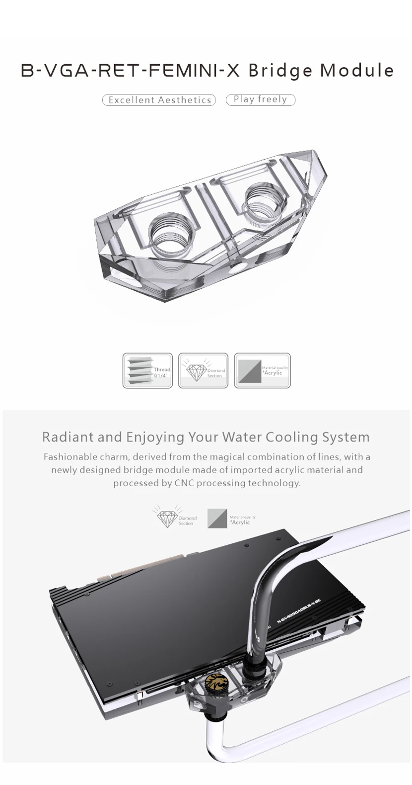 BYKSKI-Módulo Bidge de modificación de GPU MINI para gráficos RTX10, 20, 30, 40, bloque de agua/VGA, piezas de refrigeración de construcción, B-VGA-RET-FEMINI-X