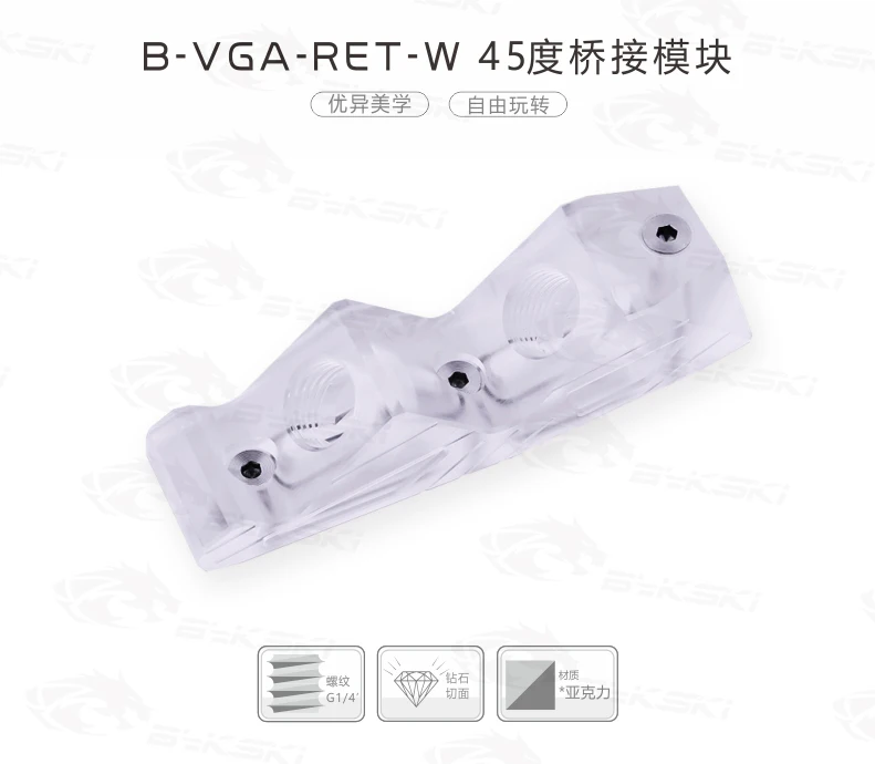 Comprar Bykski-Módulo de puente de bloque de agua, tarjeta de vídeo, G1/4 pulgadas, acrílico, 45 grados, Conector de refrigerador de GPU, B-VGA-RET-W
