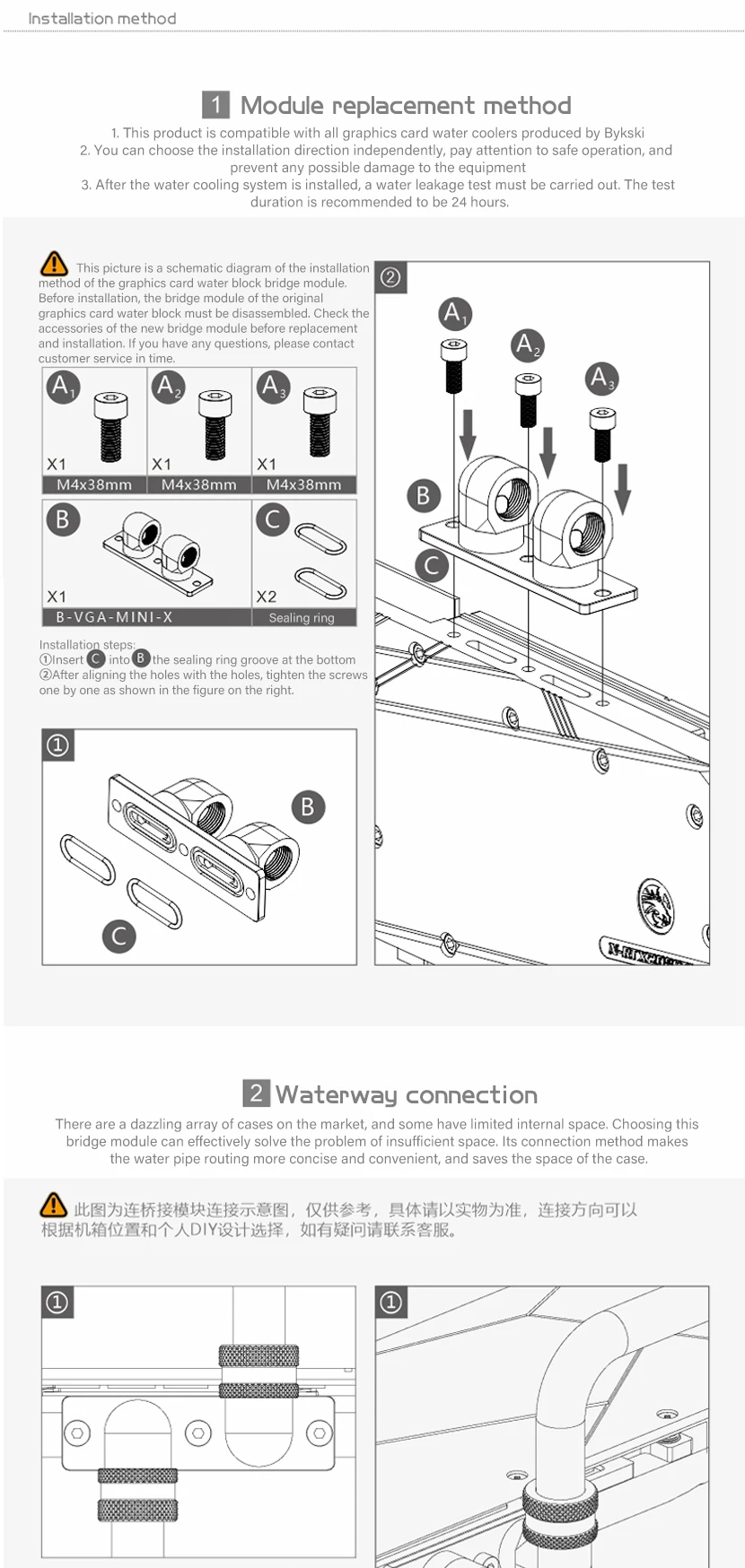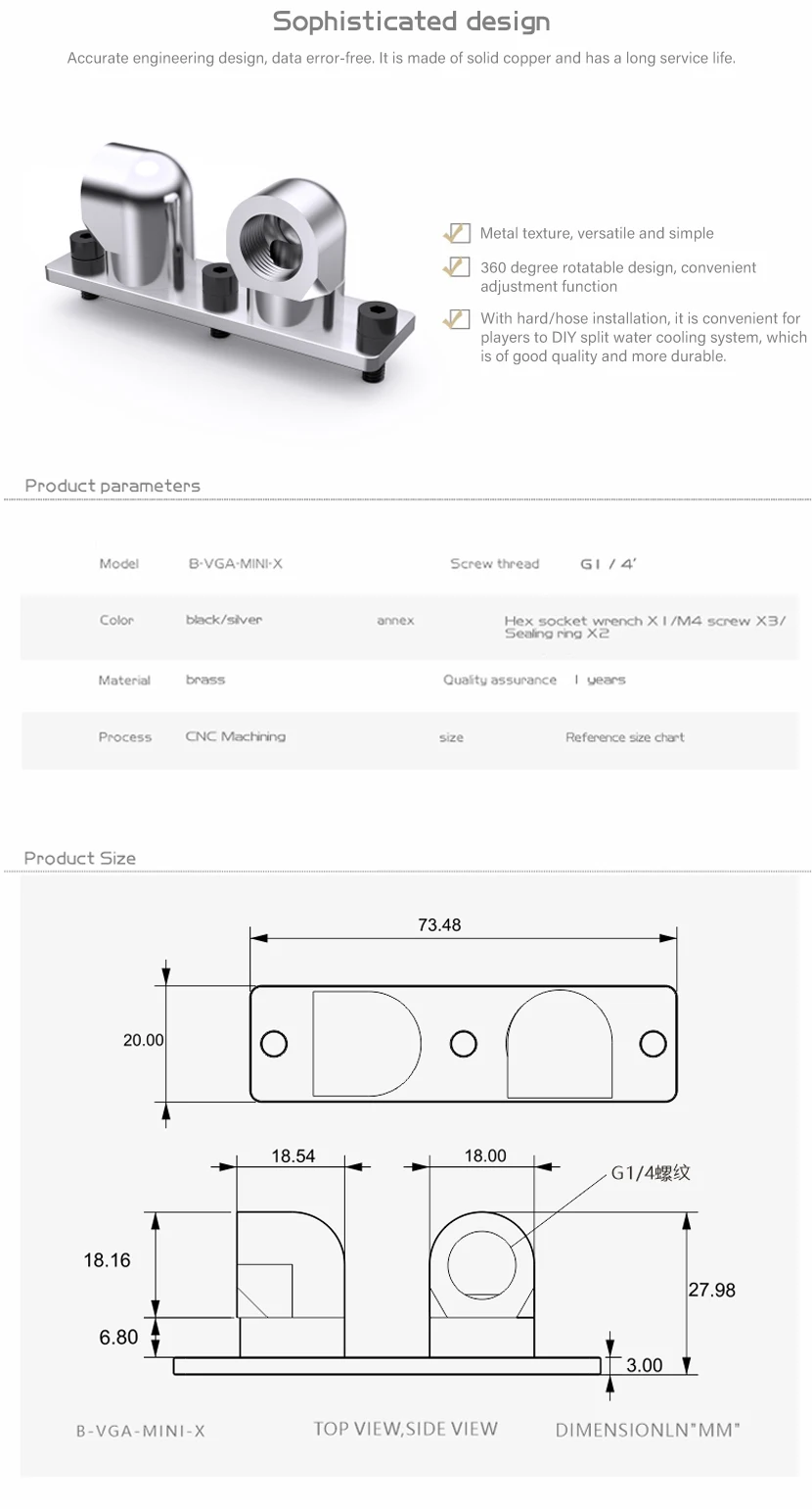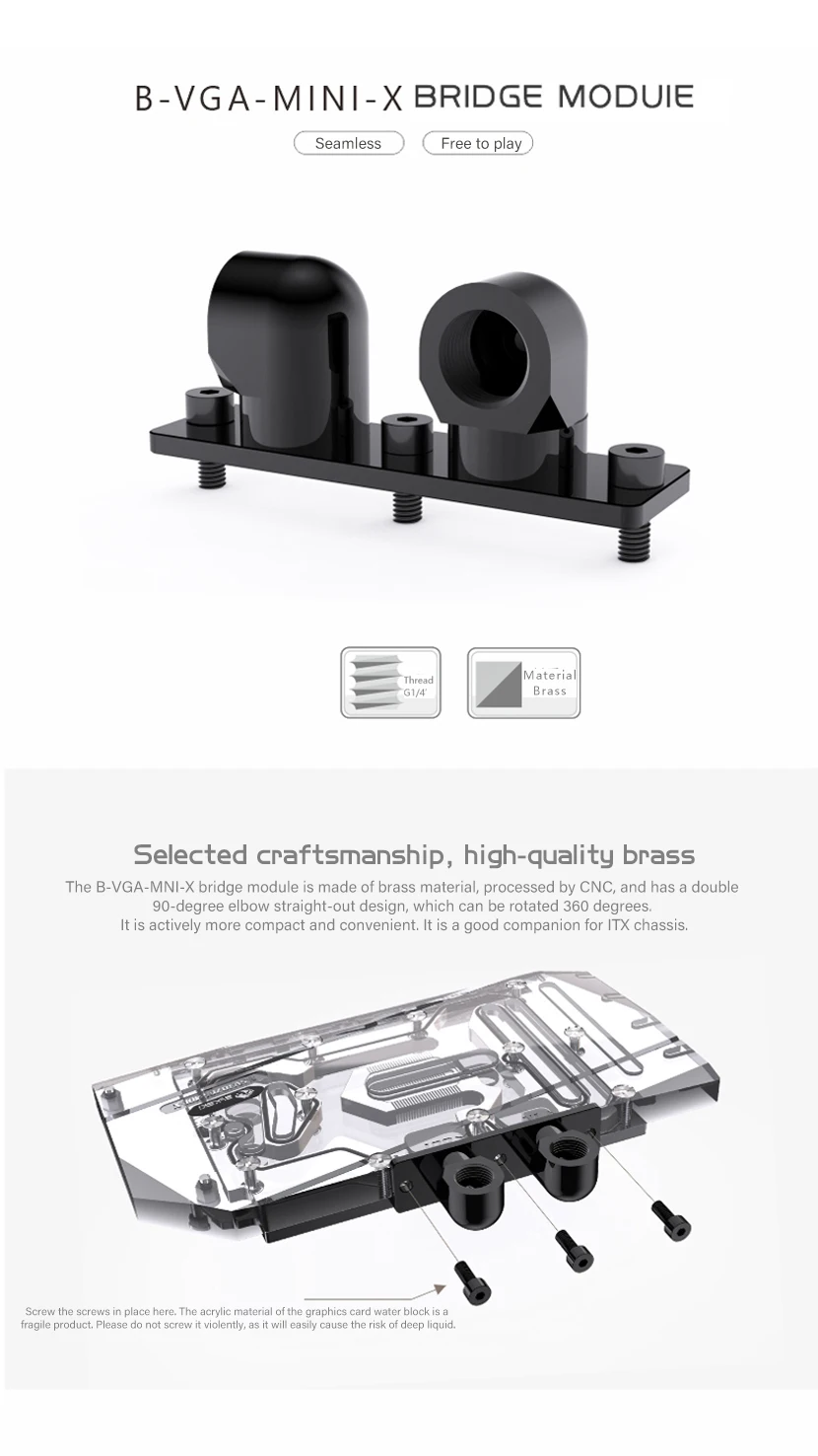 Bykski Módulo de puente giratorio Dual de 90 grados para bloque de agua de GPU, módulo de instalación de tarjeta gráfica adaptable de 360 grados B-VGA-MINI-X