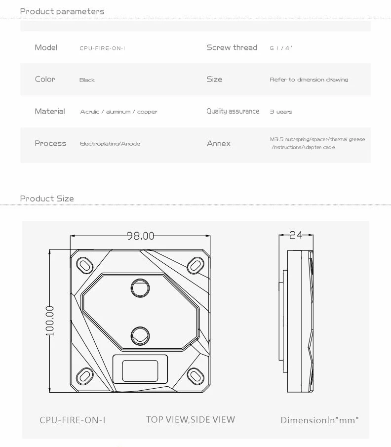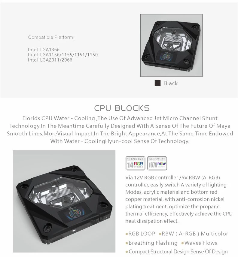 Comprar Bykski-Monitor de bloque de agua para CPU, Enfriador de agua con pantalla AURA de 5V /12V, para Intel LGA 1700, 115X, 20XX, X299, X99, 1200, CPU-FIRE-ON-I