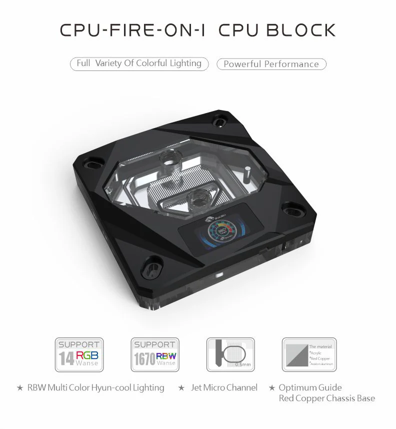 Bykski-Monitor de bloque de agua para CPU, Enfriador de agua con pantalla AURA de 5V /12V, para Intel LGA 1700, 115X, 20XX, X299, X99, 1200, CPU-FIRE-ON-I