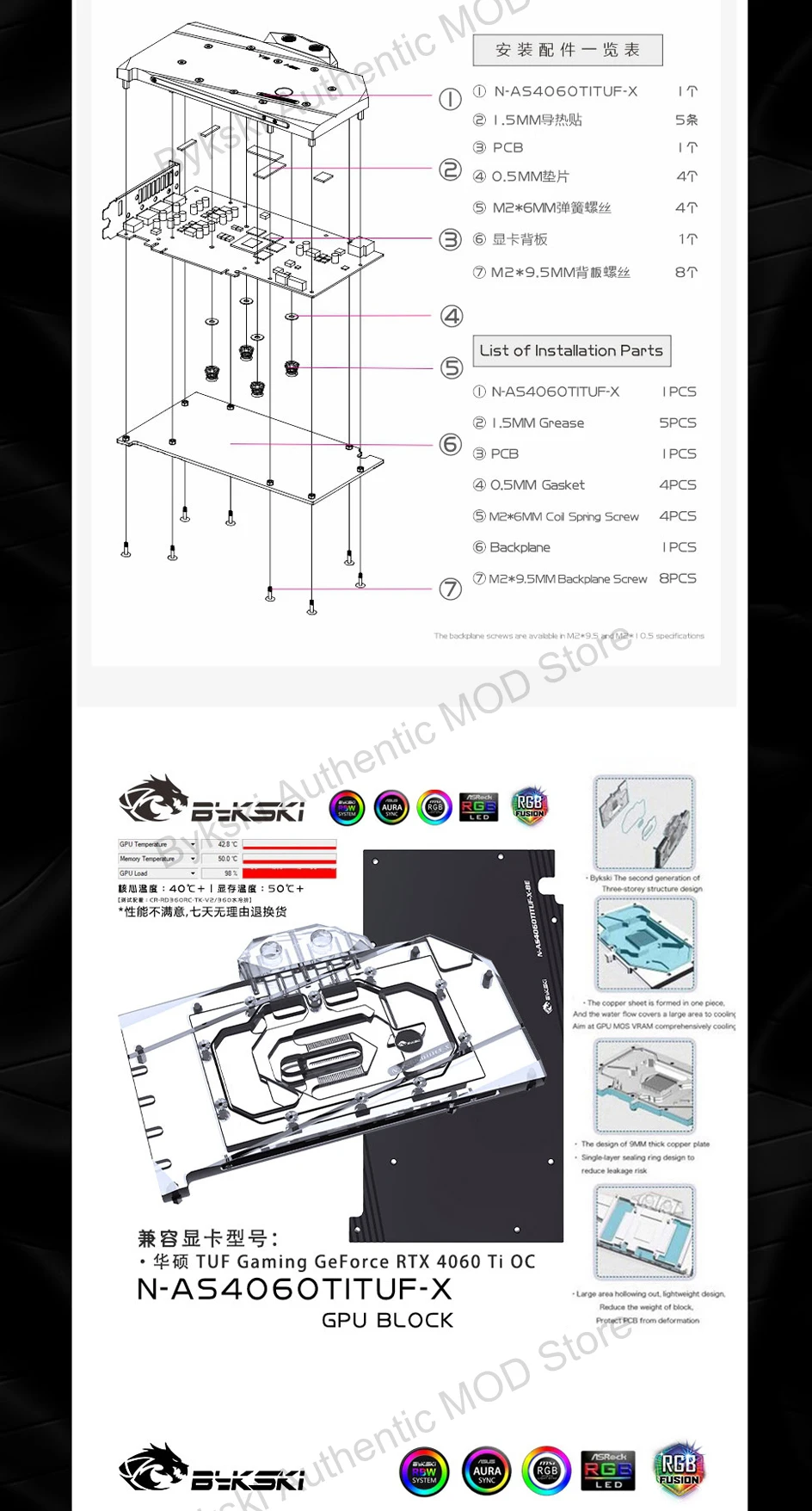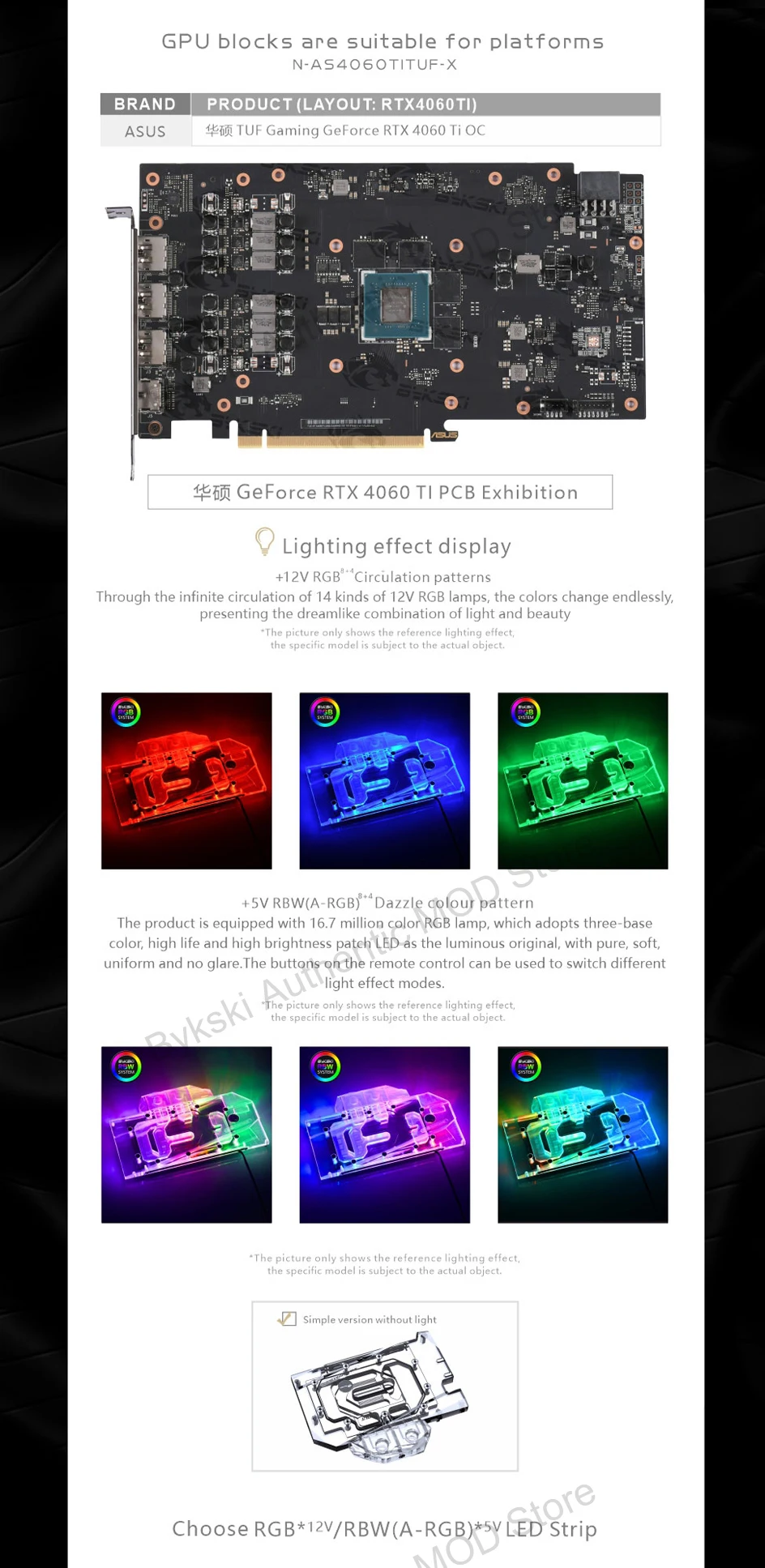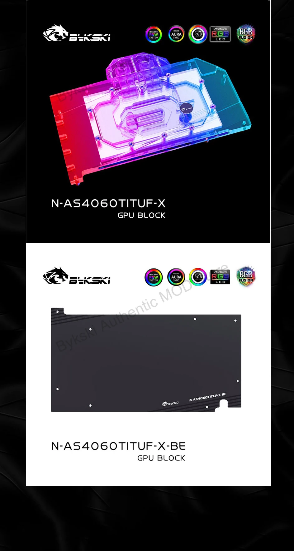 Bykski N-AS4060TITUF-X RTX 4060Ti enfriador de agua para Asus RTX4060 Ti OC GPU bloque de agua 5V ARGB + placa posterior de aluminio