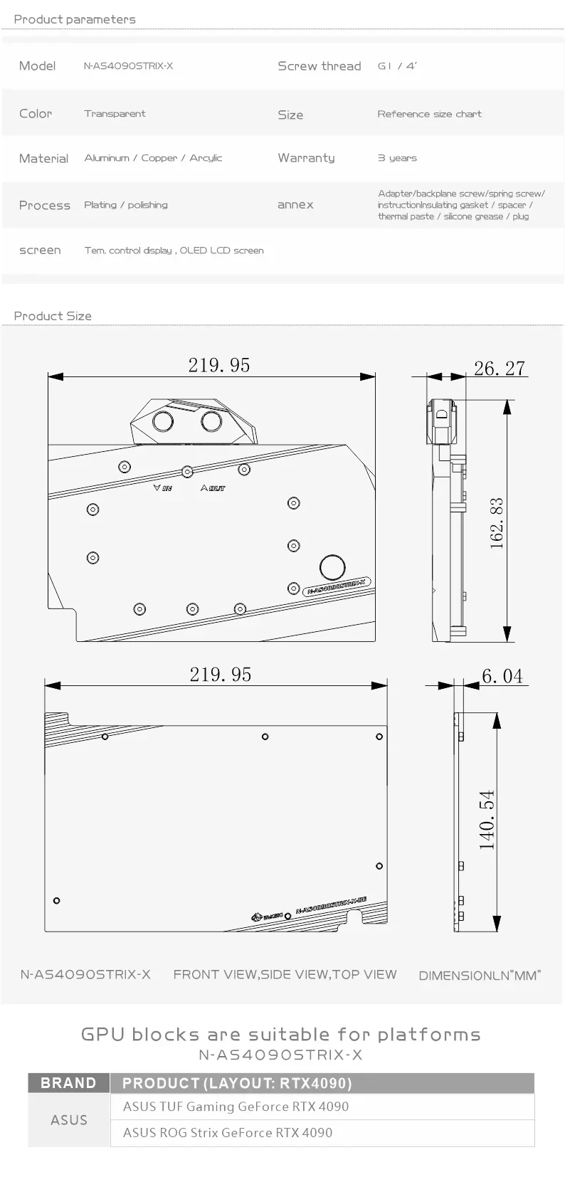 Compatibilidad basada únicamente en el diseño de referencia, es posible que el bloque no se ajuste a modificaciones/súper relojes y otras variaciones de terceros que se desvían del diseño de referencia.