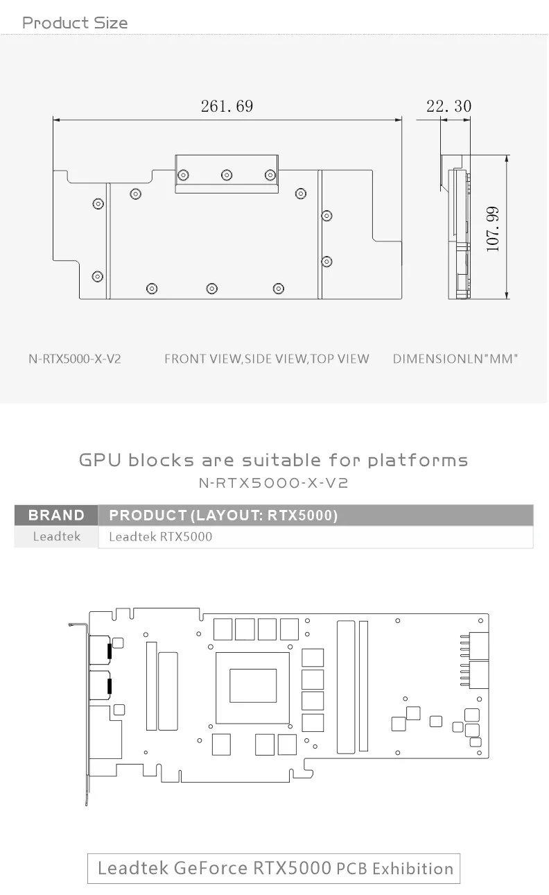 Comprar Bykski N-RTX5000-X-V2 bloque GPU uso para tarjeta de vídeo gráfica Leadtek RTX5000 refrigeración por agua/radiador de cobre totalmente metálico