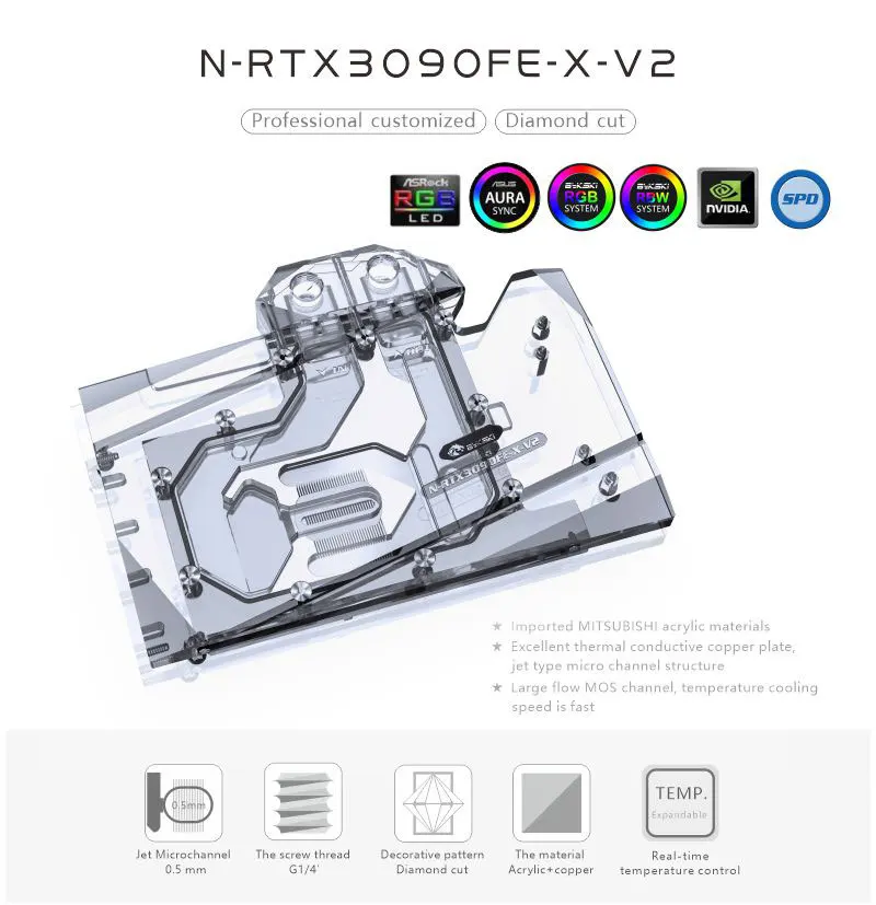 Comprar Bykski NVIDIA RTX3090 GPU bloque de agua para tarjeta gráfica NVIDIA RTX3090 Founder Edition, radiador VGA 12V/5V AURA N-RTX3090FE-X-V2