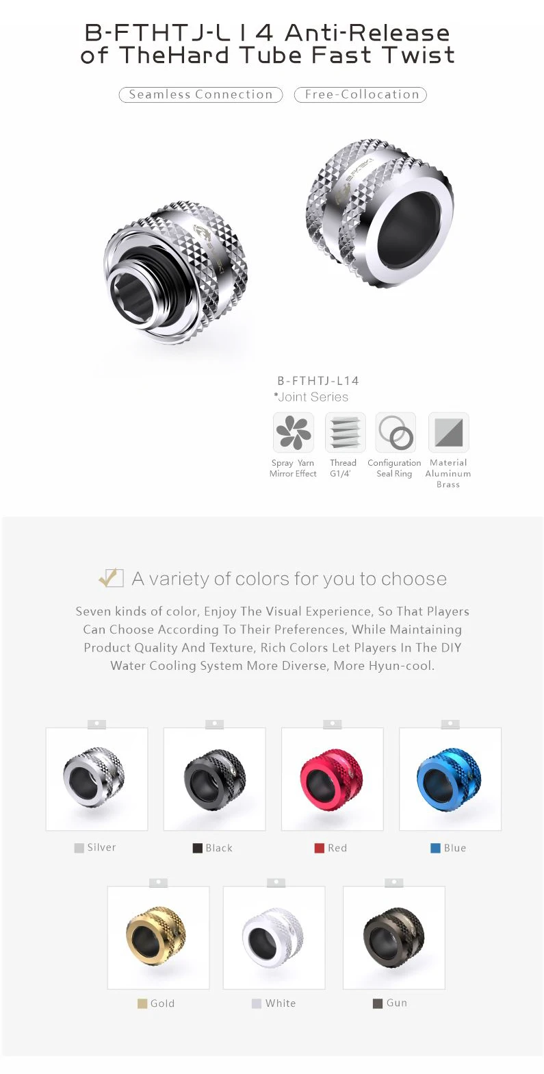 Bykski OD14mm accesorio de tubería dura antiapagado apretar a mano para 14mm PETG acrílico tubo de Metal PC construcción de refrigeración por agua, 5 colores