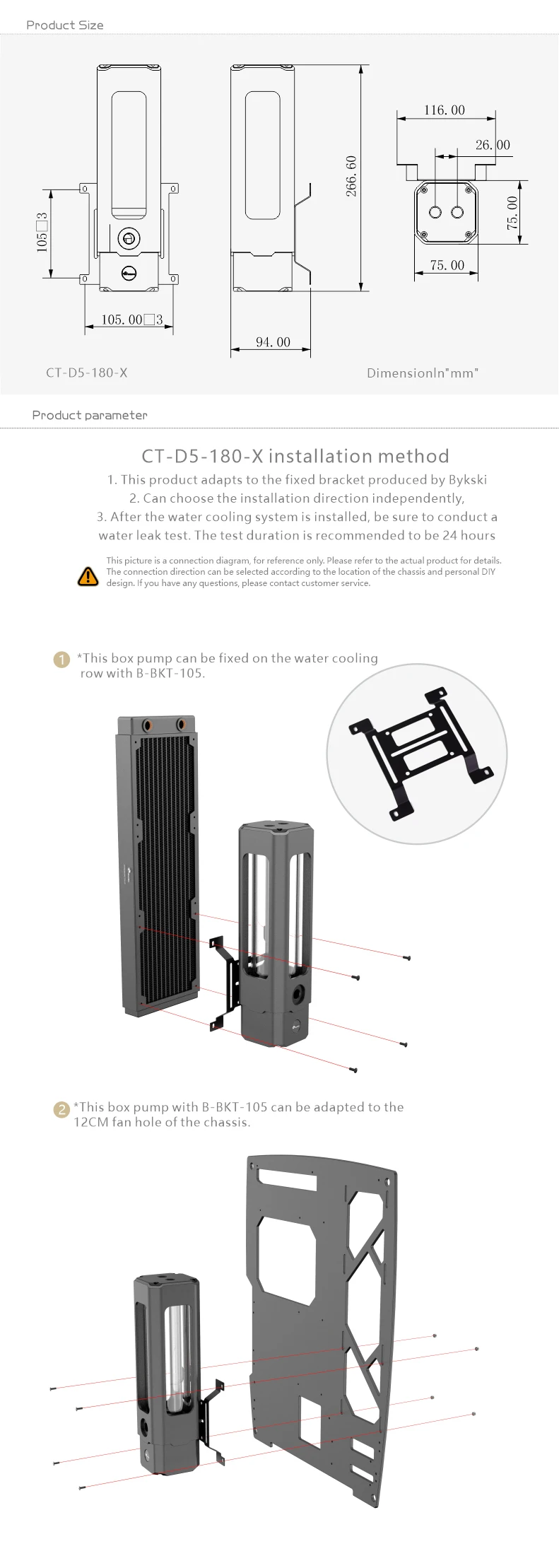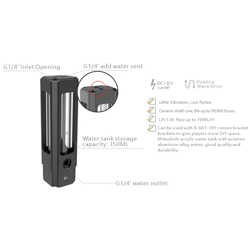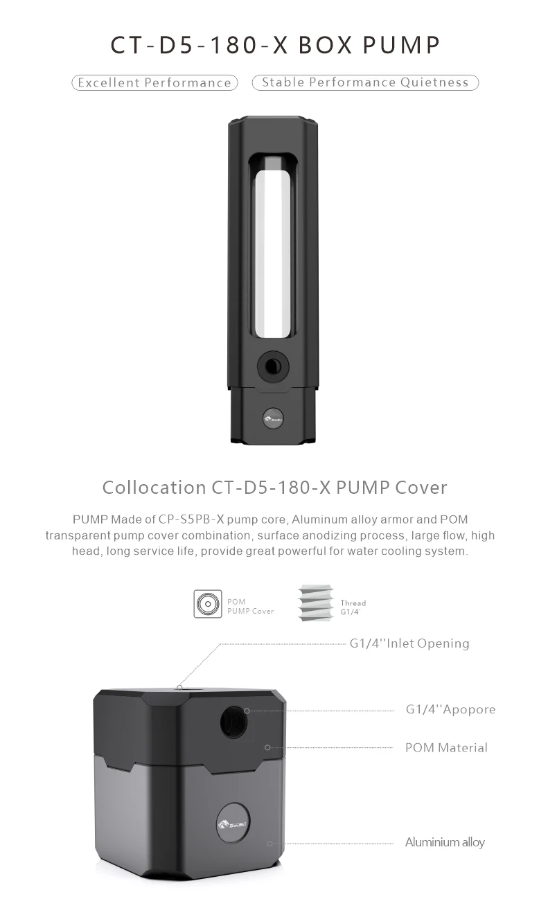 Bykski PC refrigeración por agua D5 bomba de tanque de agua Combo silencioso AIO bomba depósito enfriador de agua, elevación 3,9 m, flujo 800L/H CT-D5-180-X