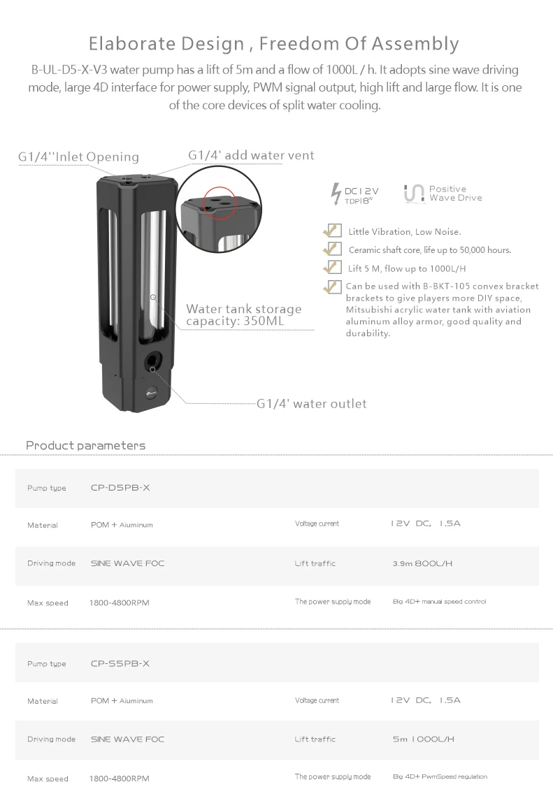 Comprar Bykski PC refrigeración por agua D5 bomba de tanque de agua Combo silencioso AIO bomba depósito enfriador de agua, elevación 3,9 m, flujo 800L/H CT-D5-180-X