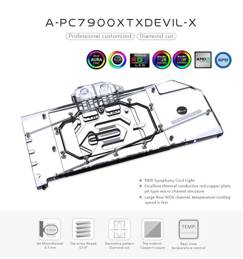 Comprar Bykski A-PC7900XTXDEVIL-X bloque de agua GPU para PowerColor GeForce RTX 7900 XTX tarjeta de vídeo Red Devil/refrigerador de cobre radiador RGB