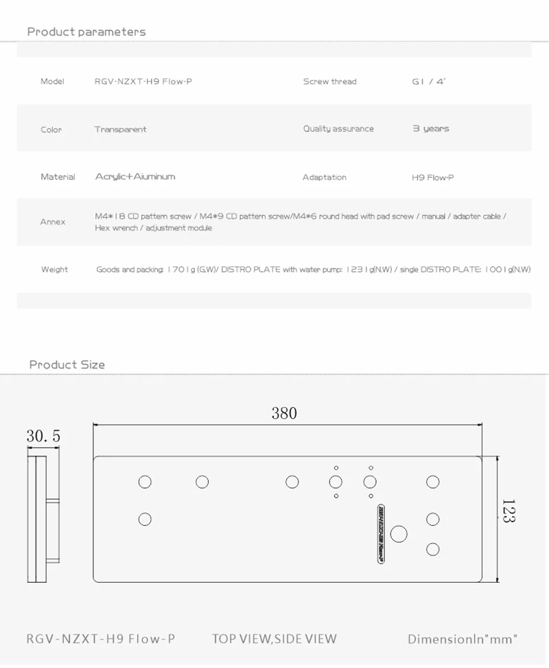 Es solo una placa de distribución acrílica/uso del depósito de la placa para la caja de la computadora NZXT H9 FIow-P
