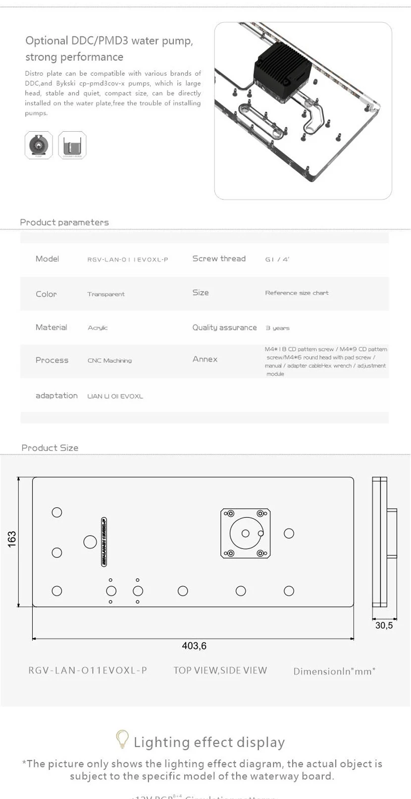 Comprar Bykski-placa acrílica astro para LIAN LI O11D EVO XL, placa enfriadora de agua, Combo DDC Pump AUAR 5V/12V RGV-LAN-O11EVOXL-P