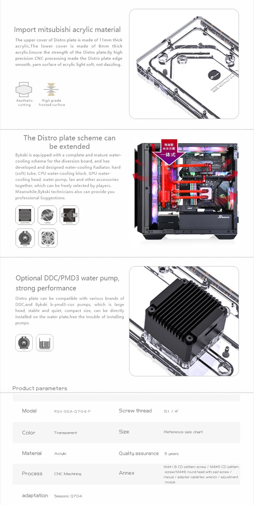 Comprar Bykski-placa acrílica de RGV-SEA-Q704-P para caja Seasonic SYNCRO Q704 PC, Kit de refrigeración por agua para PC, CPU, GPU