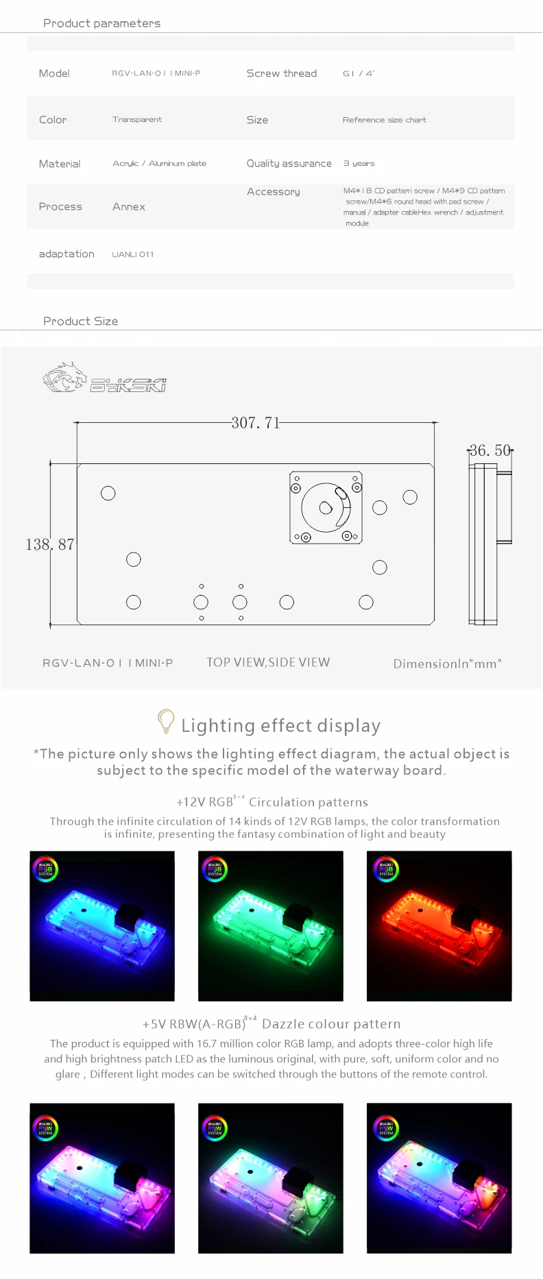 Comprar BYKSKI-placa acrílica, solución de canal de agua para carcasa LIAN LI O11MINI para CPU y bloque de GPU/3PIN RGB / Combo DDC Pump