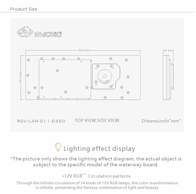 Bykski-placa astro para carcasa dinámica LIAN LI O11, bomba de depósito de refrigeración de agua acrílica, sincronización RGB de 12V/5V, RGV-LAN-O11-D360