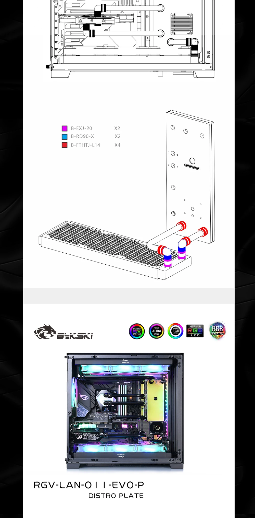 Comprar Bykski-placa astro para carcasa LIAN LI O11 EVO, sistema de refrigeración por agua para PC, RGV-LAN-O11-EVO-P