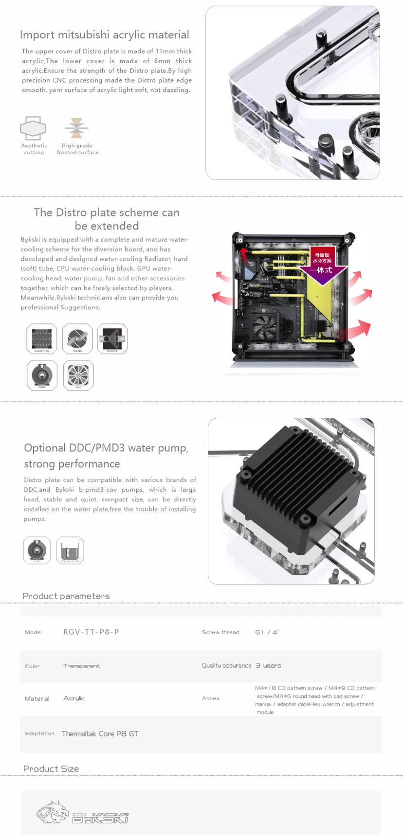 Comprar Bykski-placa astro para Thermaltake Core P8 Case, depósito de agua acrílico RGB para refrigeración de PC, 12V/5V, RGV-TT-P8-P