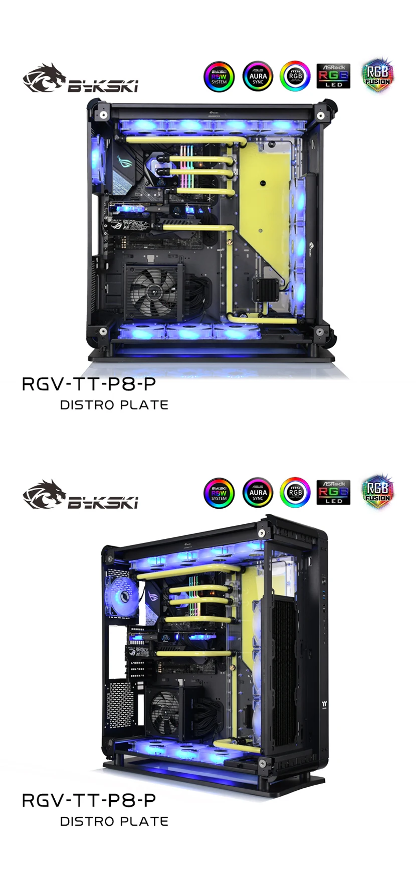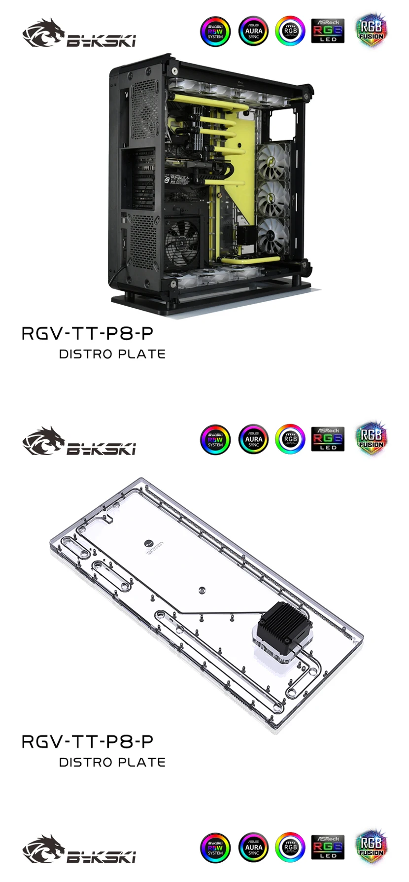 Placa Bykski Distro para Thermaltake Core P8 Case, Combo de bomba DDC de depósito, tanque de refrigeración por agua, 12V/5V ARGB AURA