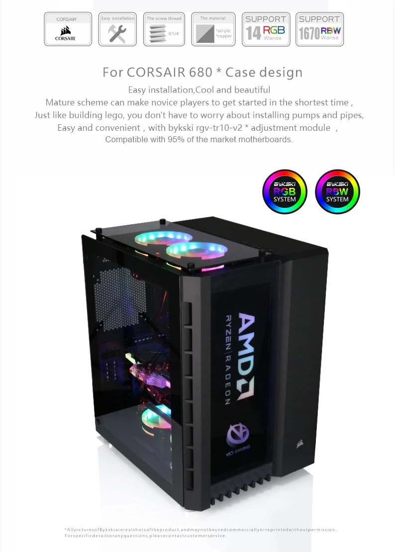 Bykski-Placa de canal de refrigeración por agua para PC, Kit de depósito de placa de canal para PC, CPU, GPU, RGV-COS-680X-P,RGB, para funda CORSAIR 680X