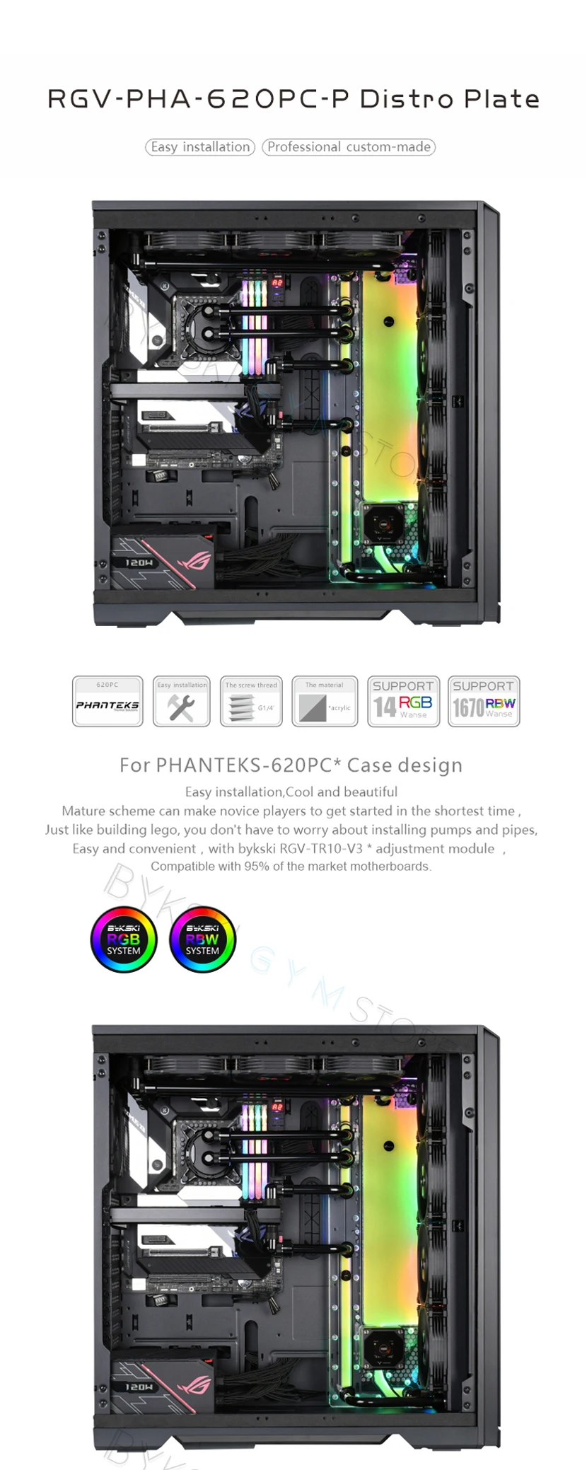 Comprar Bykski-Placa de enfriamiento por agua para PC, para Phanteks 620, caja de ordenador, tanque de agua, depósito acrílico, RGV-PHA-620PC-P