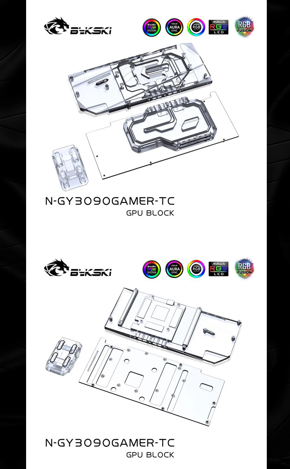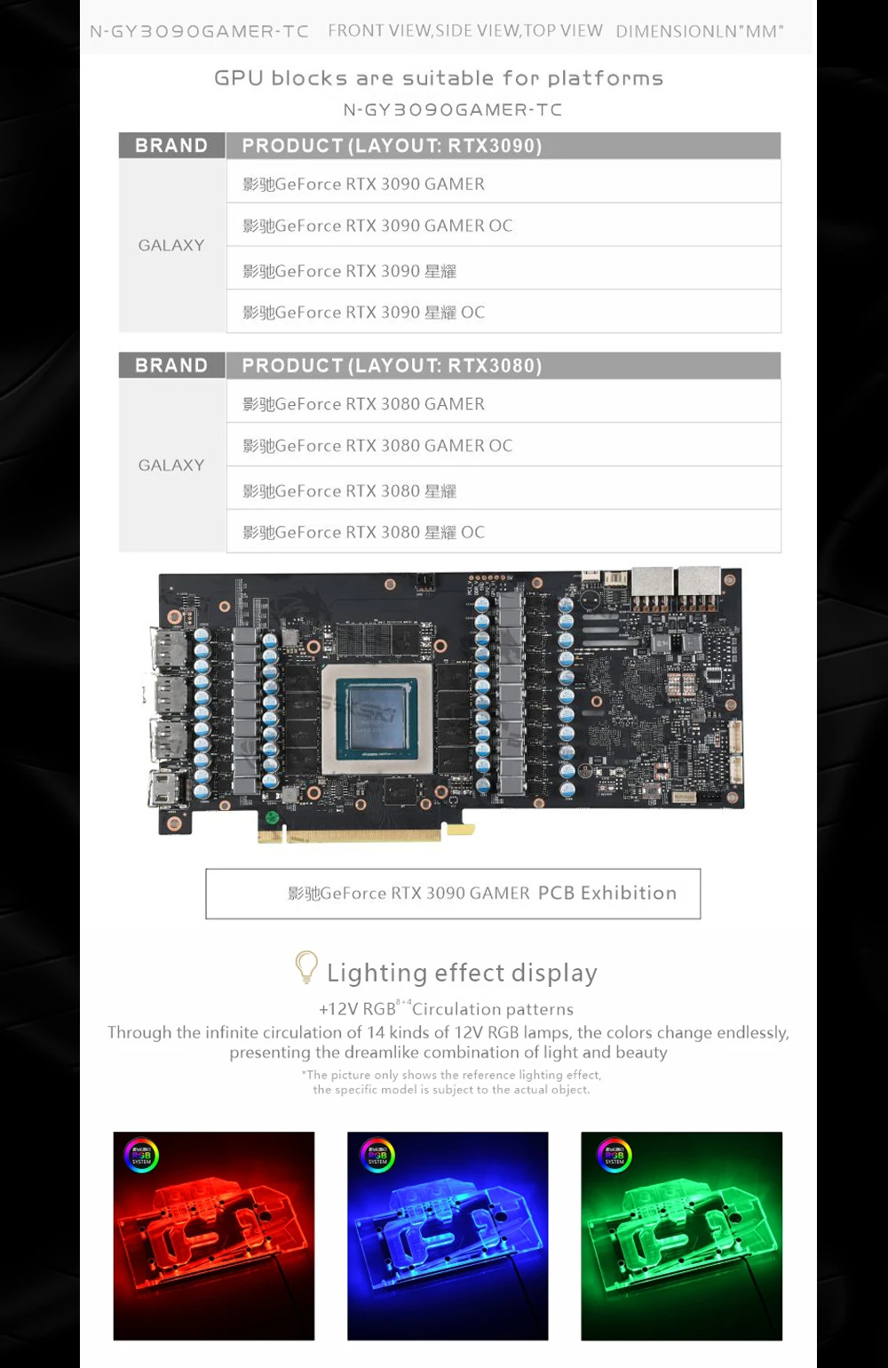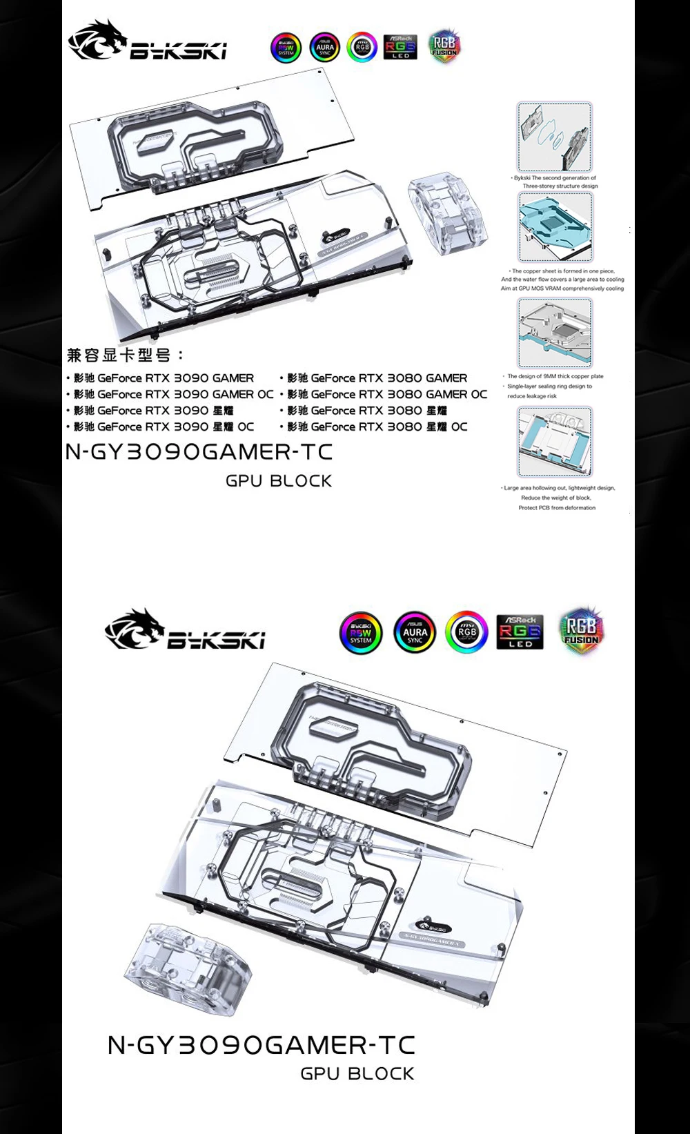 Bykski N-GY3090GAMER-TC, bloque de placa posterior activo GPU para GALAX GeForce RTX 3080/3090 GAMER OC, disipador térmico de radiador dual VRAM