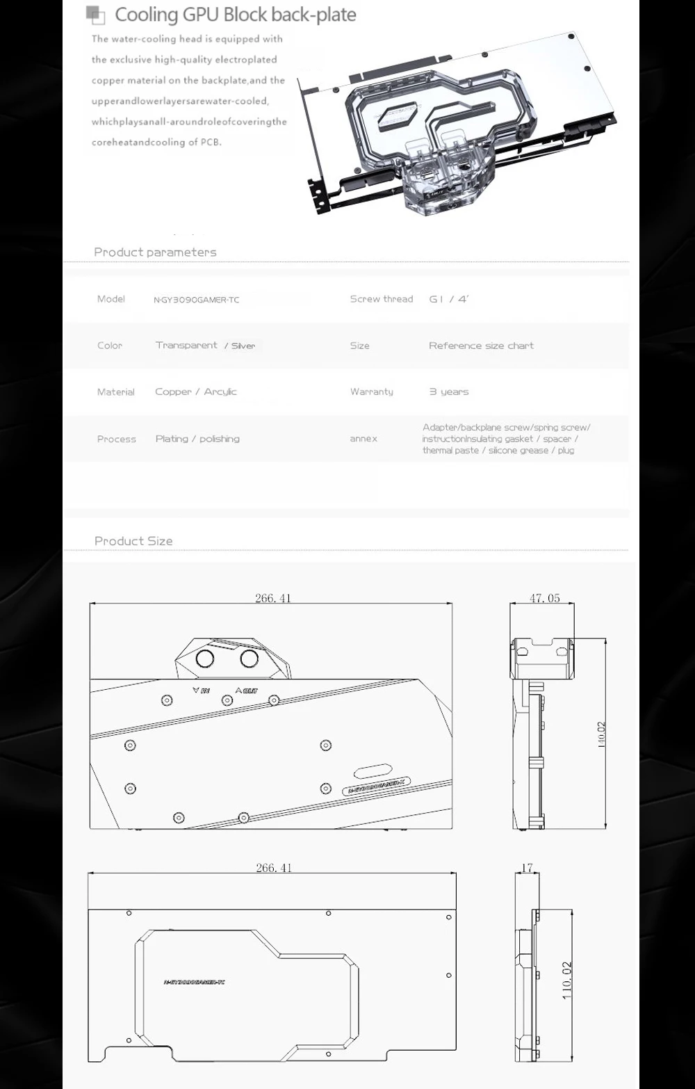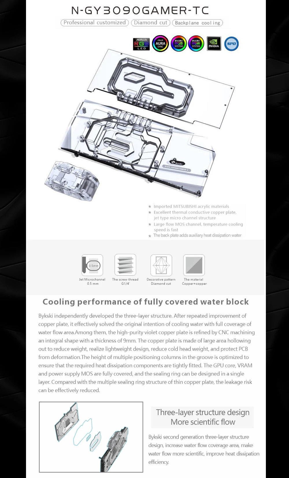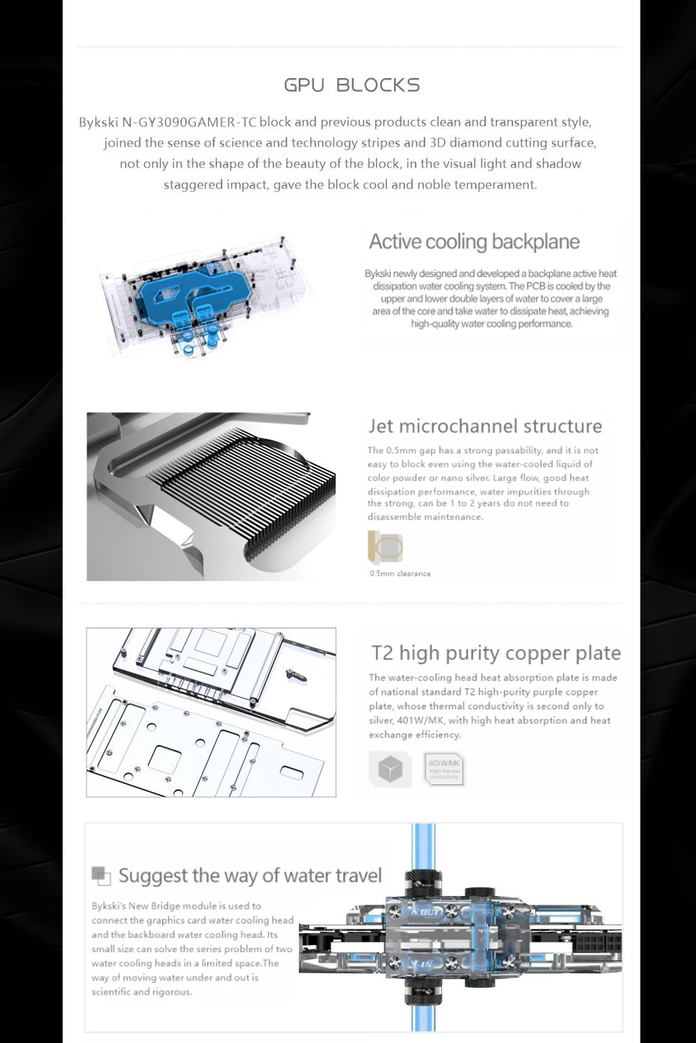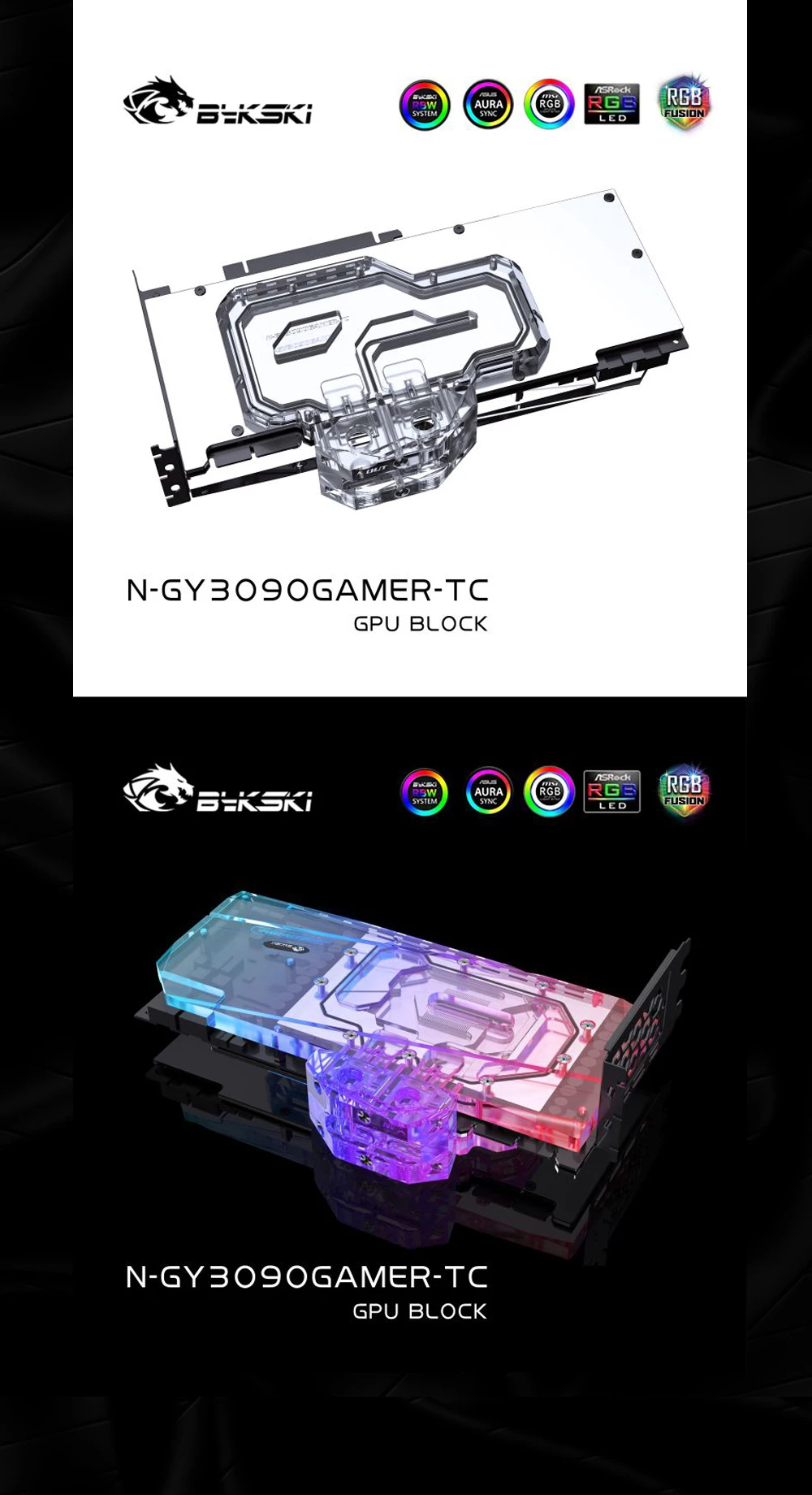Bykski N-GY3090GAMER-TC, bloque de placa posterior activo GPU para GALAX GeForce RTX 3080/3090 GAMER OC, disipador térmico de radiador dual VRAM