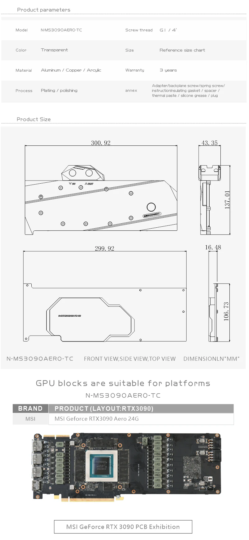 Comprar Bykski-placa trasera activa GPU, enfriador VRAM de doble cara para tarjeta MSI RTX3090 Areo 24G, radiador de memoria VGA, N-MS3090AERO-TC